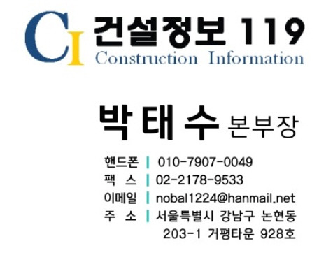 건설정보119 // 박태수본부장 010-7907-0049 // nobal1224@hanmail.net