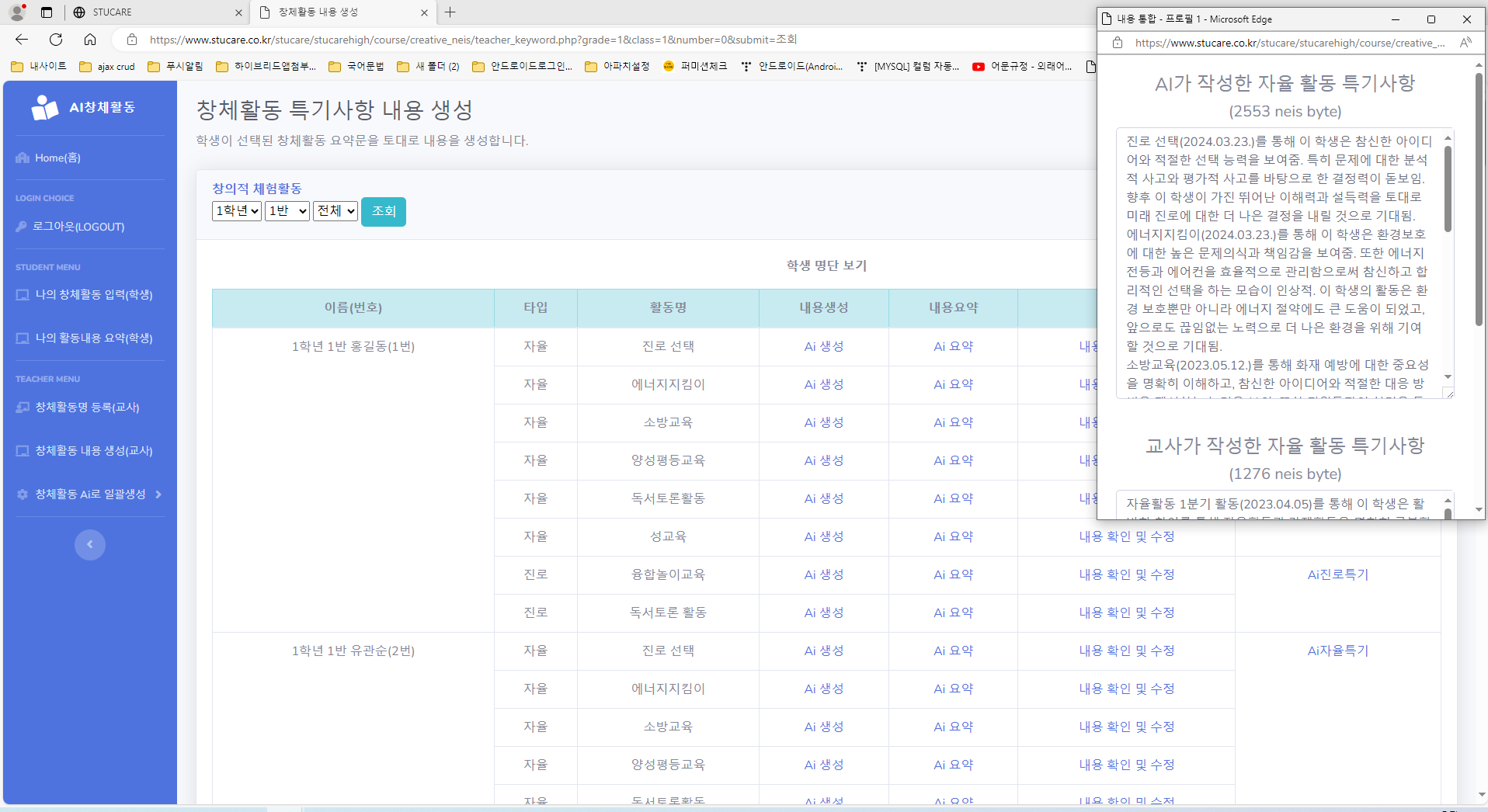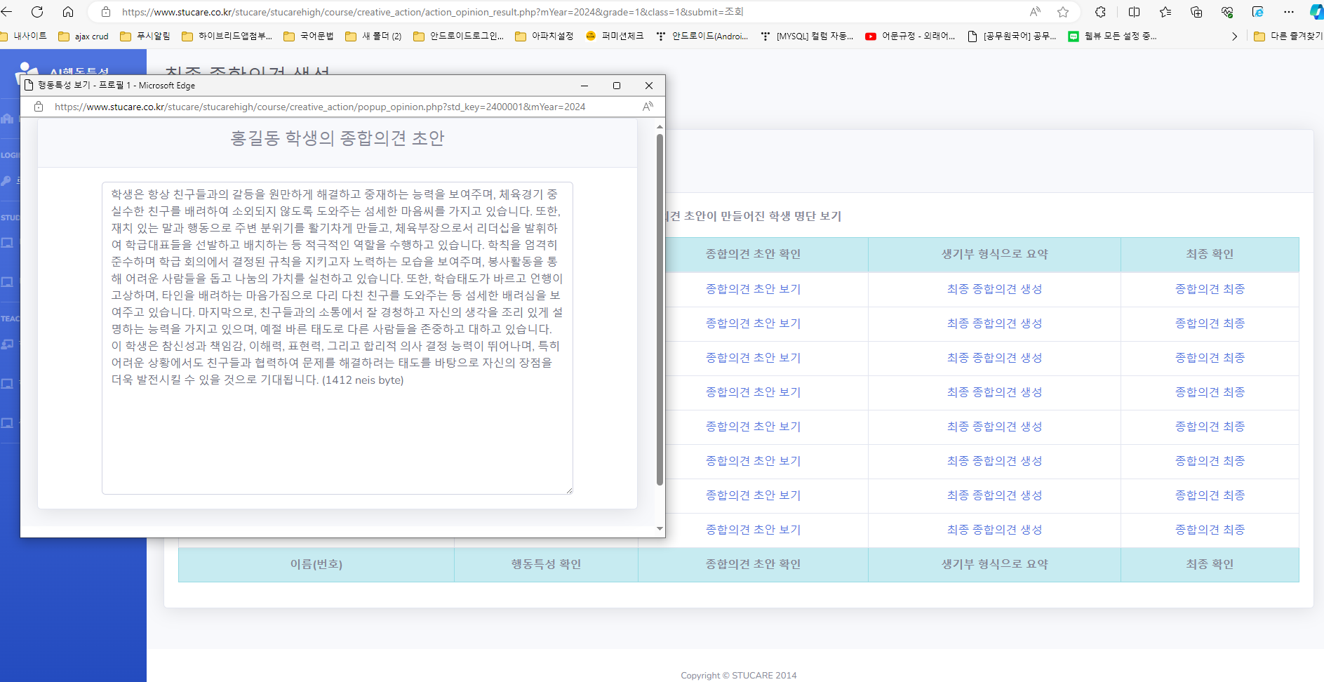 AI를 활용하여 학생들이 누가 기록한 보고서나 활동을 요약한 후, 교사의 관찰 기록을 토대로 학교생활기록부 내용을 작성하는 프로그램입니다.