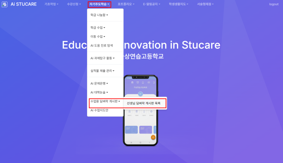 교사로그인 | 자기주도학습 > 수업용담벼락게시판