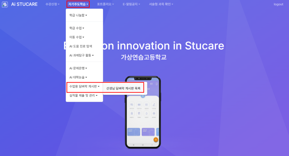 학생로그인 | 자기주도학습 > 수업용담벼락게시판