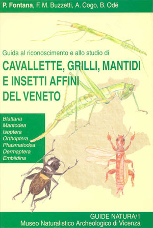2002. Fontana P, Buzzetti FM, Cogo A and Odé B. 2002. Guida al riconoscimento e allo studio di Cavallete, Grilli, Mantidi e Insetti affini del Veneto: Blattatia, Mantodea, Isoptera, Orthoptera, Phasmatodea, Dermaptera, Embiidina. Museo Naturalistico Archeologico di Vicenza Ed. Vicenza: 1-592. [in Italian] |