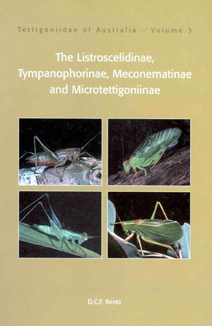 2001. Rentz DCF. Tettigoniidae of Australia vol. 3: The Listroscelidinae, Tympanophorinae, Meconematinae and Microtettigoniinae. CSIRO Publishing. 524pp. |