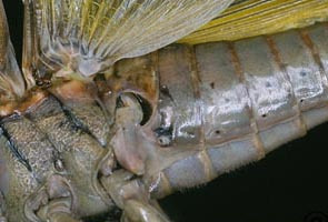 3) 고막 : 여치아목의 앞다리 고막과 메뚜기아목의 첫 번째 배마디의 고막도 완전히 성숙했을 때에 비로소 완전한 구조를 이룬다. 특히 종령 유충의 경우는 거의 고막이 형성되지만, 성충에서처럼 분명하게 뚜렷한 막질을 이루지 않으므로 구별이 가능하다.