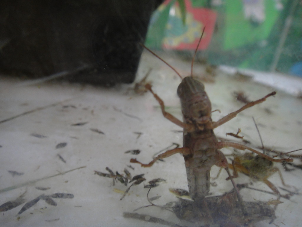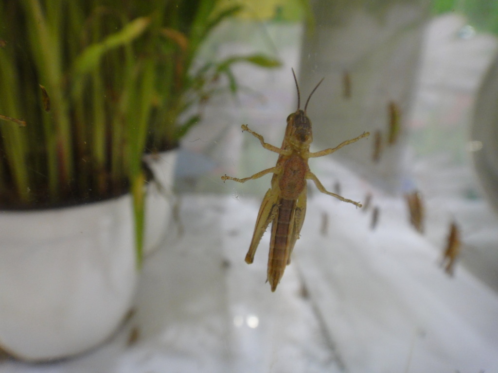 메뚜기의 사육 곤충을 직접 키우면서 관찰하는 일은 우리가 자연을 이해하는데 매우 좋은 방법이다. 책으로만 읽거나 그냥 지나치면서 잠깐 보아오던 것들에 비해 훨씬 많은 것을 직접 배우게 한다. 곤충 개개의 자세한 발달 과정이나 행동 양식은 책에 다 나와있지 않다. 이런 것은 길러서 직접 관찰한 사람만이 알 수 있는 기쁨이다. 메뚜기의 사육도 그 원칙은 다른 곤충의 사육과 크게 다르지 않다. 처음에는 어떤 종류이건 잡아다가 간단한 통에 가두어 두고 이것저것 아무거나 주어보는 것이 보통이지만 미리 공부를 해둔다면 곤충을 죽이지 않으면서 그 숨겨진 모습을 보게 될 것이다. 물론 이것은 전문적인 대량 곤충사육법과는 다르다. 목숨을 가진 생물인 곤충이 살기 위해 필요한 최소한의 조건은 사람과 동일하다. 가장 기본적인 것은 온도와 습도, 먹이이며 단 오염된 먹이감을 주의해야 한다. 무엇을 먹느냐, 어떤 곳에 사느냐, 얼마냐 사느냐 하는 것들을 충분히 이해하고 거기게 적합한 환경을 조성해 준다면 사육은 성공적이 될 것이다. 대부분은 처음 잡은 곳의 환경을 그대로 본따면 된다. 사육용기에 충분하게 젖은 흙은 깔아주는 것이 습도를 유지하는데에 좋다. 특히 여치아목의 꼽등이류와 귀뚜라미류는 보다 습한 곳을 선호한다. 귀뚜라미와 여치, 어리여치류는 메뚜기목 곤충 가운데서도 가장 기르기 쉬운 종류들이다. 대개의 종이 식성이 보편적이어서 사람이 먹는 각종 음식물의 찌꺼기로도 잘 자라고 인공조명이 필요없는 실온 상태에서도 잘 큰다. 그러나 메뚜기류는 사실 좀 까다롭다. 이들은 비교적 먹이 선호도가 제한된 편이고 사육하기 전에 이들이 즐겨먹는 이상적인 식물의 종류를 알아야 한다. 대개는 벼과나 콩과 식물들이다. 또한 메뚜기류의 유충은 인공사육시에 다른 메뚜기목 곤충들보다 잘 죽는다. 이들에게는 실온보다 더 높은 온도와 햇빛이 필요하다. 이들의 자연적인 야외생활 환경을 이해한다면 무엇이 요구조건인가 알 수 있을 것이다. 만약 온실을 이용할 수 있다면 이 문제를 극복할 수 있다. 여러 마리를 함께 기를 때는 흔히 열대어 가게에서 파는 큰 수조를 이용할 수 있다. 깊이가 깊은 것은 먹이 식물을 직접 흙과 함께 심어줄 수 있어서 좋다. 뚜껑은 공기가 통할 수 있어야 하며 습도가 너무 높으면 곰팡이가 잘 생겨서 특히 어린 메뚜기 유충들이 쉽게 죽게된다. 한편 땅에서 주로 활동하는 귀뚜라미같은 종류는 발톱사이에 잘 들러붙을 수 있는 욕반이 없으므로 유리로 된 벽을 기어오를 수 없다. 반대로 풀과 나무 위에서 생활하는 메뚜기와 여치류는 발목마디에 욕반이 잘 발달되어 유리나 플라스틱 벽을 잘 기어오르며 사육용기 내에서도 자꾸 위로 올라가려고만 할 것이다. 이런 습성은 탈피할 시기에도 반영되는데 귀뚜라미류는 돌밑이나 바닥에 숨은 채로 쉽게 탈피를 하지만 여치나 메뚜기류는 공중에서 거꾸로 매달린 채 중력의 도움을 받아야 탈피를 할 수 있다. 만약 유리로만 된 사육조에 여치나 메뚜기를 기르면 이렇게 탈피 도중에 유리에서 미끄러져 탈피를 제대로 마치지 못하고 몸이 비정상이 되거나 죽는 경우가 많다. 이런 종류에게는 탈피시에 잘 붙을만한 받침이 되는 뚜껑이나 마찰이 있는 벽 대용물이 필요하다. 곤충은 탈피할 때에 특히 주의해야 하는데 허물을 벗을 때가 되면 보통 메뚜기는 며칠 전부터 음식섭취를 중단하고 안전하게 매달릴 곳을 찾아 헤맨다. 유충의 날개부분은 다른 곳보다 진하게 보이고 두툼해 보인다. 이런 때에 적당한 장소를 제공하여 카메라를 설치한다면 탈피과정을 촬영할 수 있다. 메뚜기와 일부 초식성 여치들은 집단적으로 기를 수 있다. 그러나 잡식성과 포식성인 다른 것들은 형제자매들로부터 잡아먹힐 수 있는 동종포식의 위협을 받는다. 특히 자신을 방어할 수 없는 탈피 시기에 더욱 그러하다. 이런 종류는 분명히 한 마리씩 따로 길러야 하거나 많은 격리 공간을 두어야 한다. 암컷은 보통 교미를 하고나면 얼마 후에 땅 속에 무작위로 산란하지만 종에 따라서 나무껍질이나 잎사이에 낳는 것이 있으므로 이런 산란장소를 제공해 주어야 한다. 메뚜기는 늘어난 배를 땅속에 꽂고 덩어리로 거품에 쌓인 알을 낳으며 산란관이 매우 긴 여치나 베짱이, 귀뚜라미는 땅속에 낱개로 알을 하나하나씩 낳는다. 긴꼬리는 식물의 줄기를 물어뜯고 그 속에 산란관을 집어넣어 알 낳는다. 산란관이 짧고 낫형으로 생긴 실베짱이류는 나무껍질이나 나뭇잎의 가는 틈에 알을 낳는다. 가장 어려운 사육 가운데 하나는 포식성 메뚜기류이다. 일반적으로 포식성 여치류는 인공사료나 죽은 것도 곧잘 먹지만 사마귀는 오직 움직이는 먹이만 먹으므로 살아있는 곤충을 직접 제공해 주어야 한다. 물론 야외에서 자주 채집해 주면 좋지만 시간이 없을 경우 초파리 사육용기나 진딧물이 붙은 가지 등을 넣어주는 것도 좋다. 관찰할 점 - 여러 가지 먹이를 주고 어떤 식성을 가졌나 살펴보자. 사육과정의 기록 곤충을 채집할 때와 마찬가지로 가장 중요한 데이터는 채집지와 채집일이며 각 단계의 탈피가 일어난 날자, 성충이 된 날
