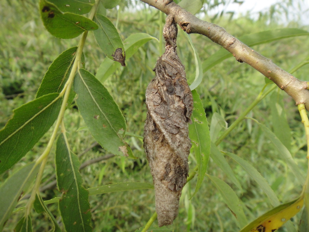 * 주머니나방 * 나비목 주머니나방과의 곤충으로서 도롱이나방 또는 도롱이벌레라고도 합니다. 수컷은 날개를 편 길이가 약 20∼26 mm 정도이며 몸빛깔은 흑갈색의 털로 덮여 있고 무늬는 없으며 더듬이는 빗살 모양입니다. 암컷은 날개와 다리가 없고 몸길이는 15∼18 mm로 몸의 털은 성충이 되면 곧 빠집니다. 수컷은 성충이 되어 밖으로 날아가지만 암컷은 계속 집속에서 살며 수컷이 날아와 번식합니다. 연 1회 4∼7월에 나타나며 유충은 가늘고 긴 통꼴인데, 나무껍질의 작은 조각을 붙인 도롱이를 만들고 그 속에 숨으며 주로 식사할 때만 몸을 밖으로 내밀고 자기가 만든 집을 떠나지 않습니다. 활엽수를 비롯한 각종 수목의 잎과 나무껍질, 이끼 등을 먹고 삽니다. 주머니나방과의 나방유충이 만든 집은 제각각 달라 종의 특징을 나타내므로 종의 구별에도 이용됩니다. 한국의 주머니나방과 곤충에는 애기주머니나방속, 차주머니나방속, 주머니나방속을 포함한 5속 6종이 분포합니다.