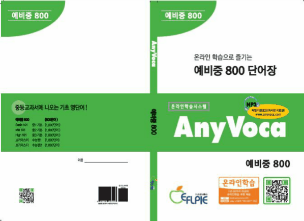 작성자영어단어장 애니보카(anyvoca) 작성자 본인 여부 작성자 작성시간 21.03.08 용량이 많아서 링크만 넣습니다. 자료 다운 받으시고 프린트해서 학습 시켜 보세요. 초등800 단어장 과 중1 단어장 중간 단계 800단어 입니다. 2칼라. 80쪽, 80쪽. 받아쓰기, 크로스워즈 게임 2세트 입니다. 영어단어장 제작하면서 녹음한 원어민 음성은 큐알코드 스캔하면 들을수 있습니다 ~~