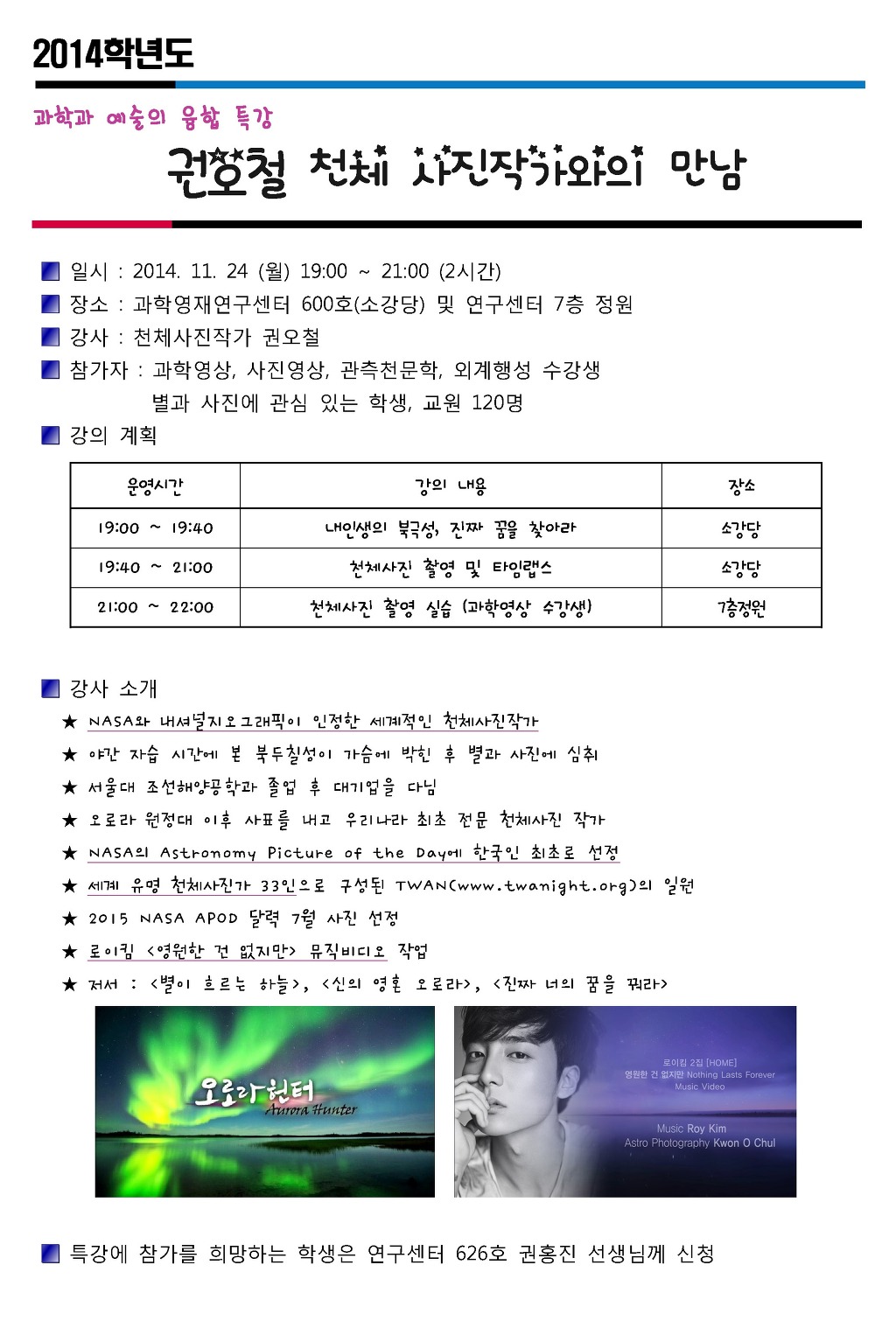 경기과학고등학교에서 천체사진작가 권오철 님의 특강을 준비했습니다.