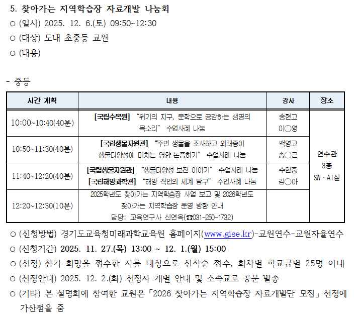 '지역자원을 활용한 교과 융합형 학생 체험학습장 개발'을 목표로