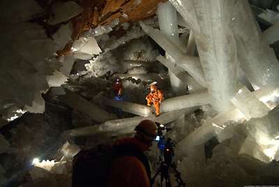 이 동굴엔 폭 10 미터, 길이 약 30미터 짜리 대형 크리스탈이 수두룩하다고 합니다.