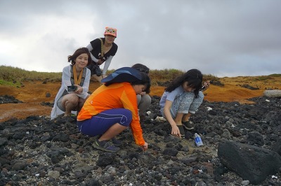 감람석이 풍부한 응회암이 풍화 침식되어 형성된 연두빛 모래사장 >ㅁ<