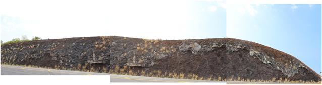 aa 와 pahoehoe lava가 교대로 흐른 경계가 시루떡 같아보인다.