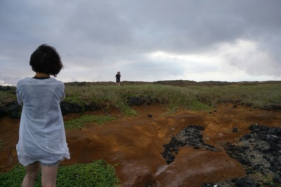 불규칙적이고 거친 aa 표면을 그대로 흘러 덮은 pahoehoe~~ 순간순간 붉고 뜨거운 마그마가 도로 위를 흘러가는 상상을 해보았답니다.