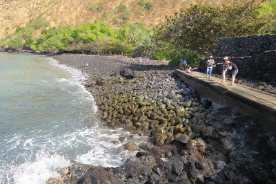유명관광지를 지나면 자동으로 설명이 재생되는 네비게이션 덕분에 쿡 장군이 하와이에 잠시 머무르는 동안 원주민에게 신처럼 대접을 받다가 인간임이 탄로난 후 서로서로 죽고죽였다는 무서운 하와이 역사를 배울 수 있었습니다. 도착한 유적지에서는 관리의 흔적이 전혀 보이지 않는 정체불명의 돌탑과 현무암의 침식으로 형성된 몽돌 해수욕장, 게가 막 돌아다니는 청정 자연을 관찰할 수 있었어요. 마침 파도가 심하니 바다에 들어가지 말라는 경고문을 무시하고 오리발에 스노클링 장비를 풀장착하고 바다로 뛰어든 백인 아저씨가 계셨는데요~ 바다에 입수하자마자 거센 파도에 휘말려 해안가로 떠밀려오는 웃픈 장면도 보았고요 ㅋㅋㅋ