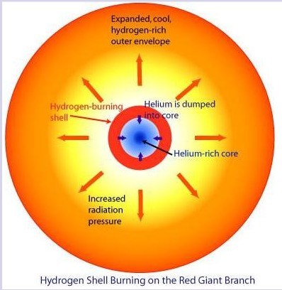어떤 자료에는 중심부의 헬륨핵이 위 그림처럼 수축하면서 외층이 팽창하는 단계라고 되어 있습니다. 또 어떤 자료는 중심부에서 헬륨핵융합반응이 일어날때 부터를 적색거성이라한다고 되어 있습니다. 그럼 왼쪽그림이 적색거성이 아니라는 건데... 아니면 두 과정이 모두 적색거성 단계에 포함되는 건가요?