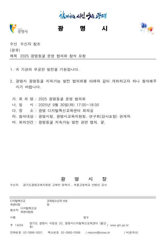 1. 동굴 장소 사용에 대한 협조: 광명도시공사