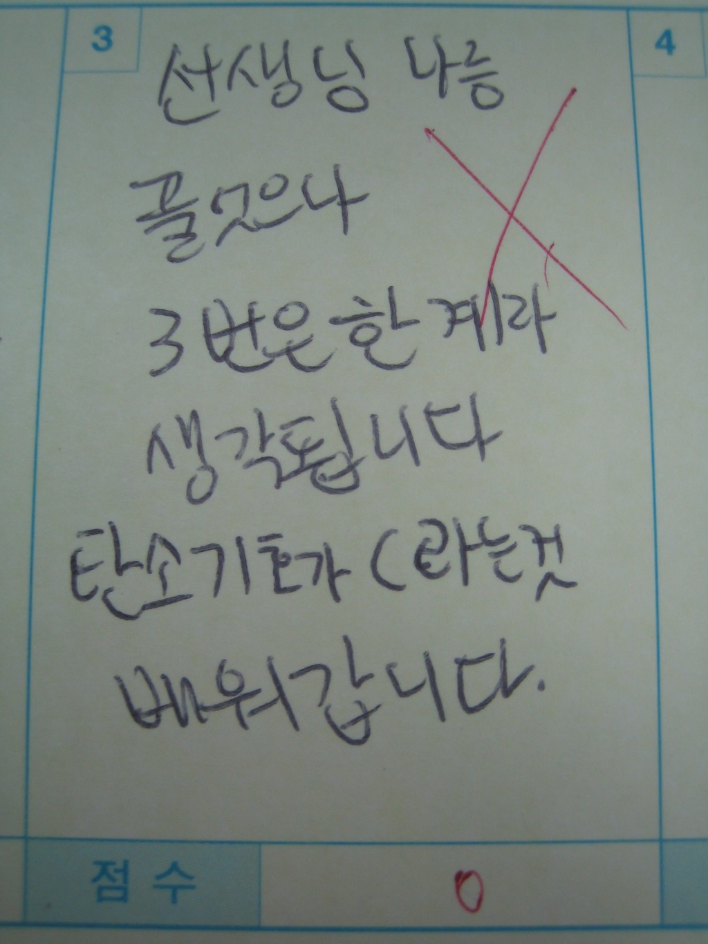 & 학기초 꿈에도 나타나 나를 눈물짓게 했던 녀석 1차 지필 답안지.