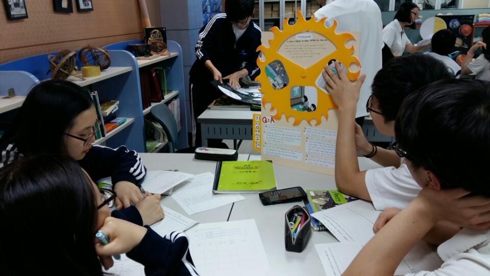 지난 월요일, 아이들의 수행 결과물을 받아서 지구과학실에 모아 두었다. 이제 다음 주 첫 시간에는 <전시장 수업>을 통해 아이들이 직접 다른 조의 발표를 듣고, 평가도 하게 될 것이다.