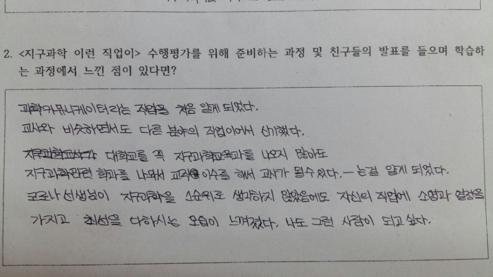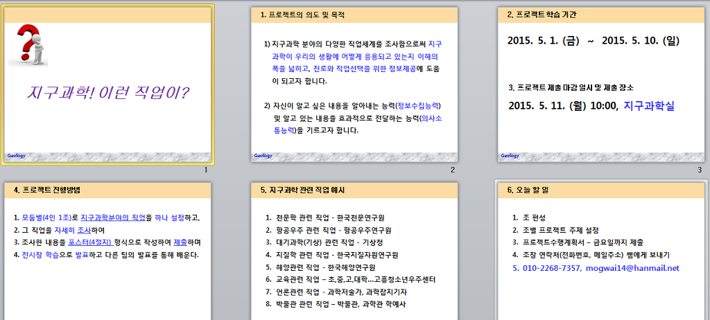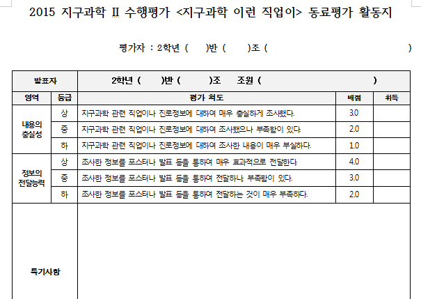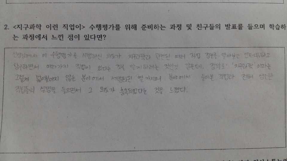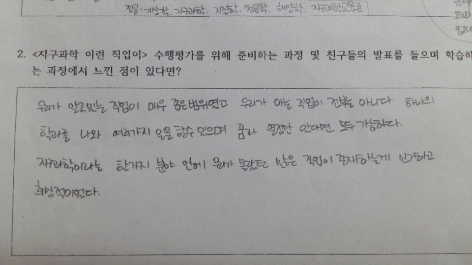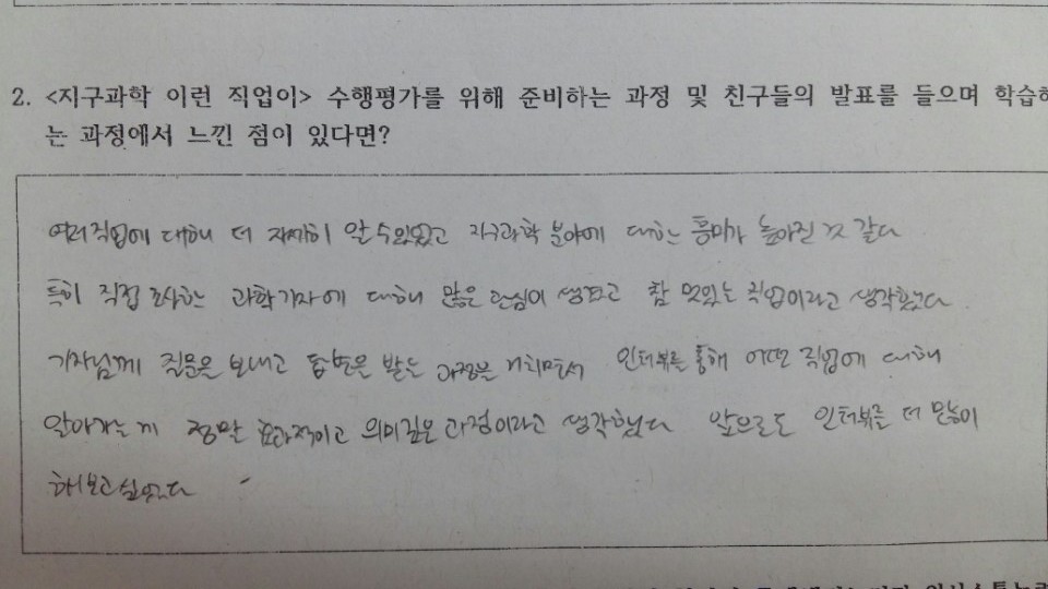 그 중 10점 짜리 프로젝트가 "지구과학, 이런 직업이?"라는 조사학습 프로젝트이다.