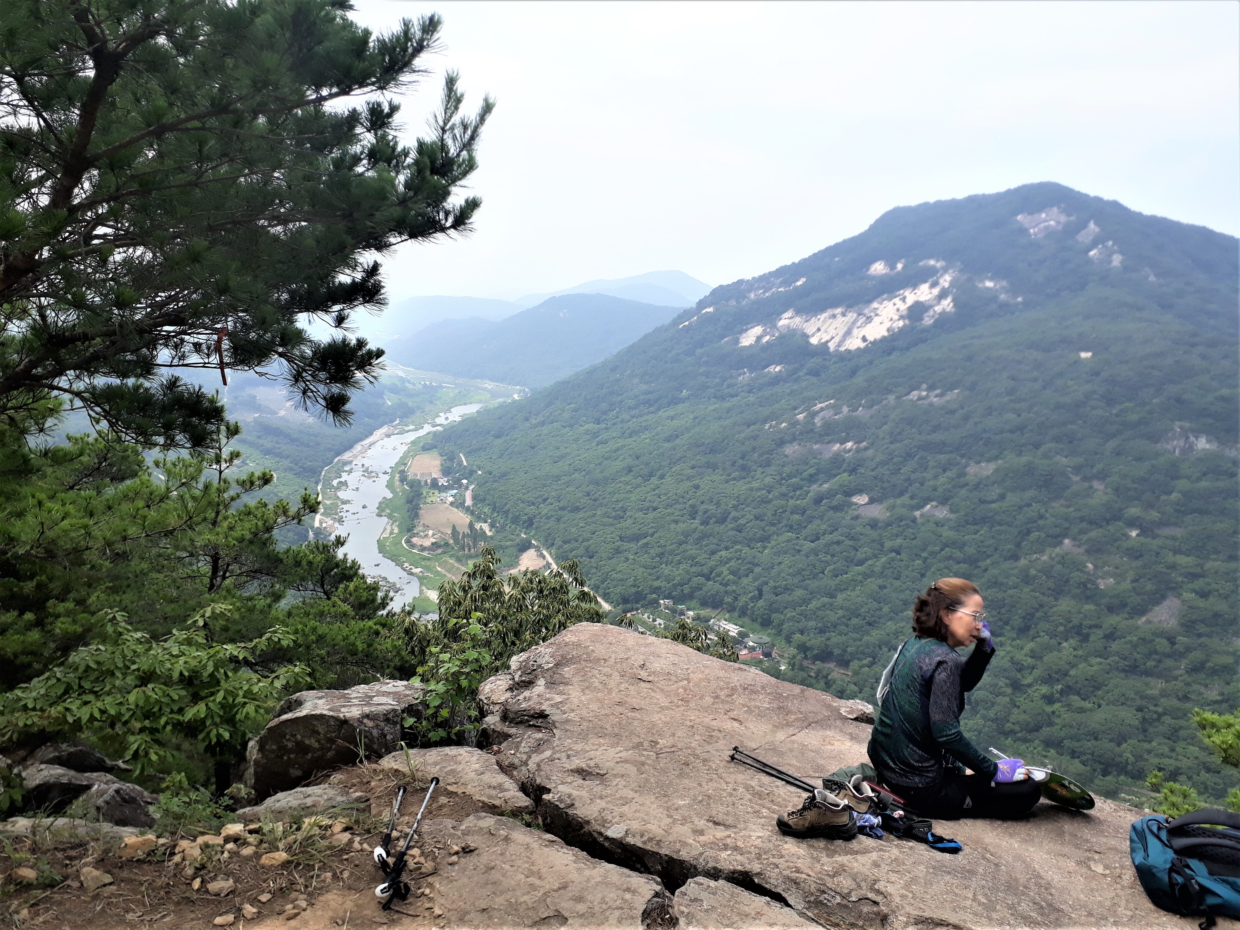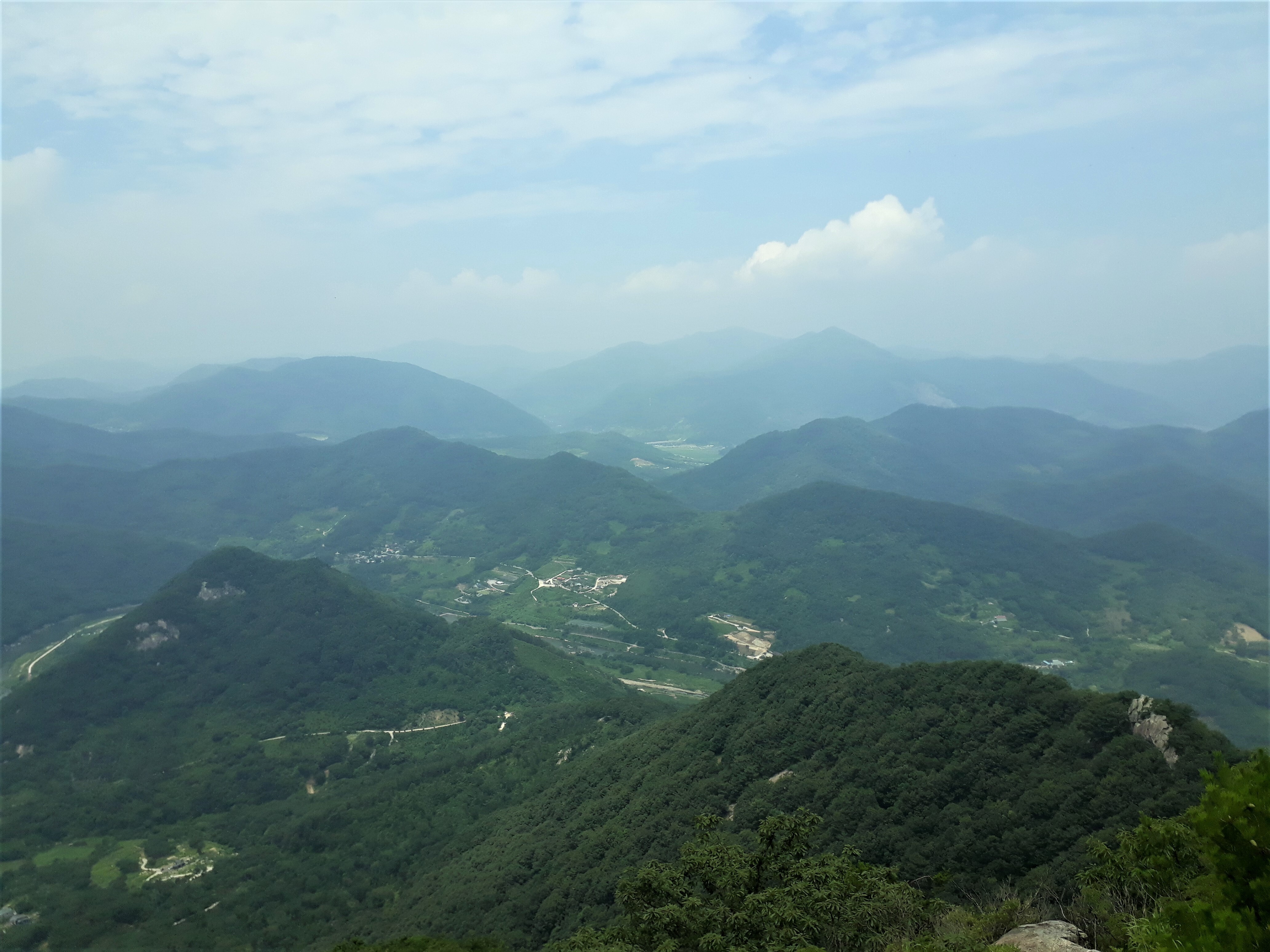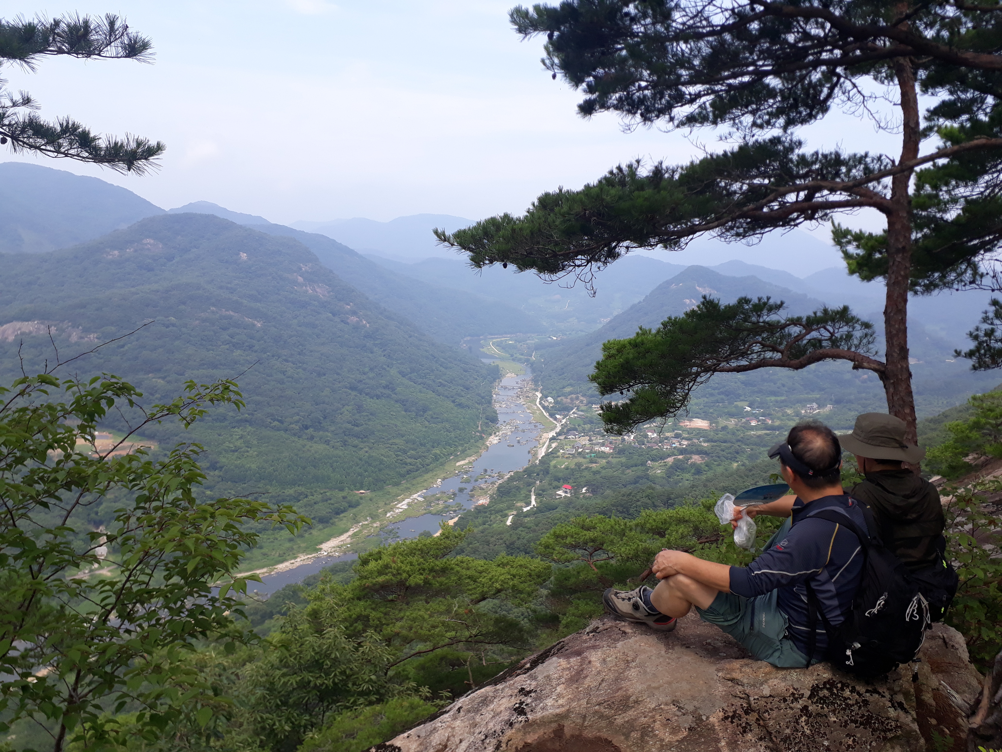 전망바위에서 쉬는 산님들에게 자리를 뺏겼지만 산하는 여전히 눈을 즐겁게 하고.