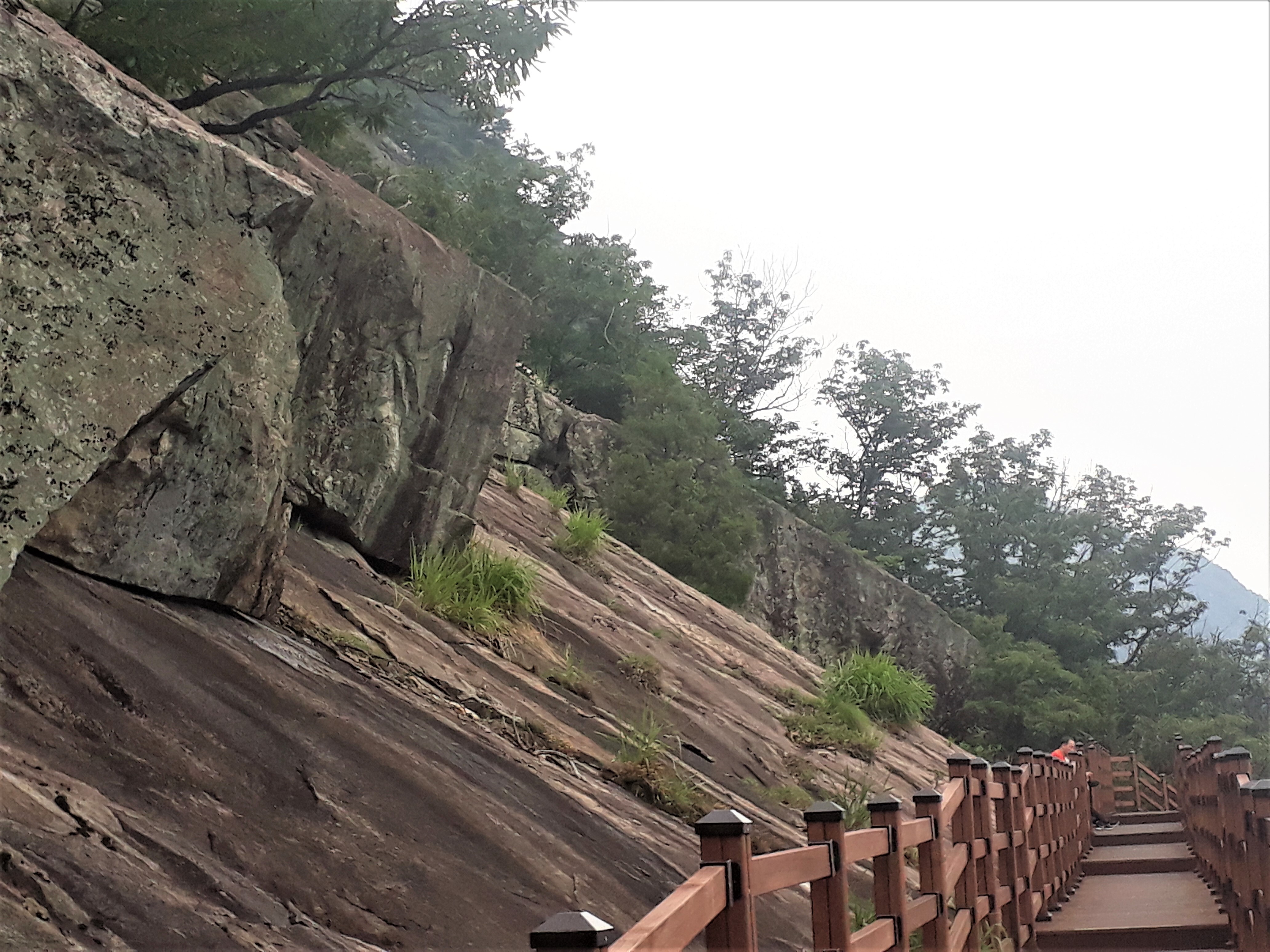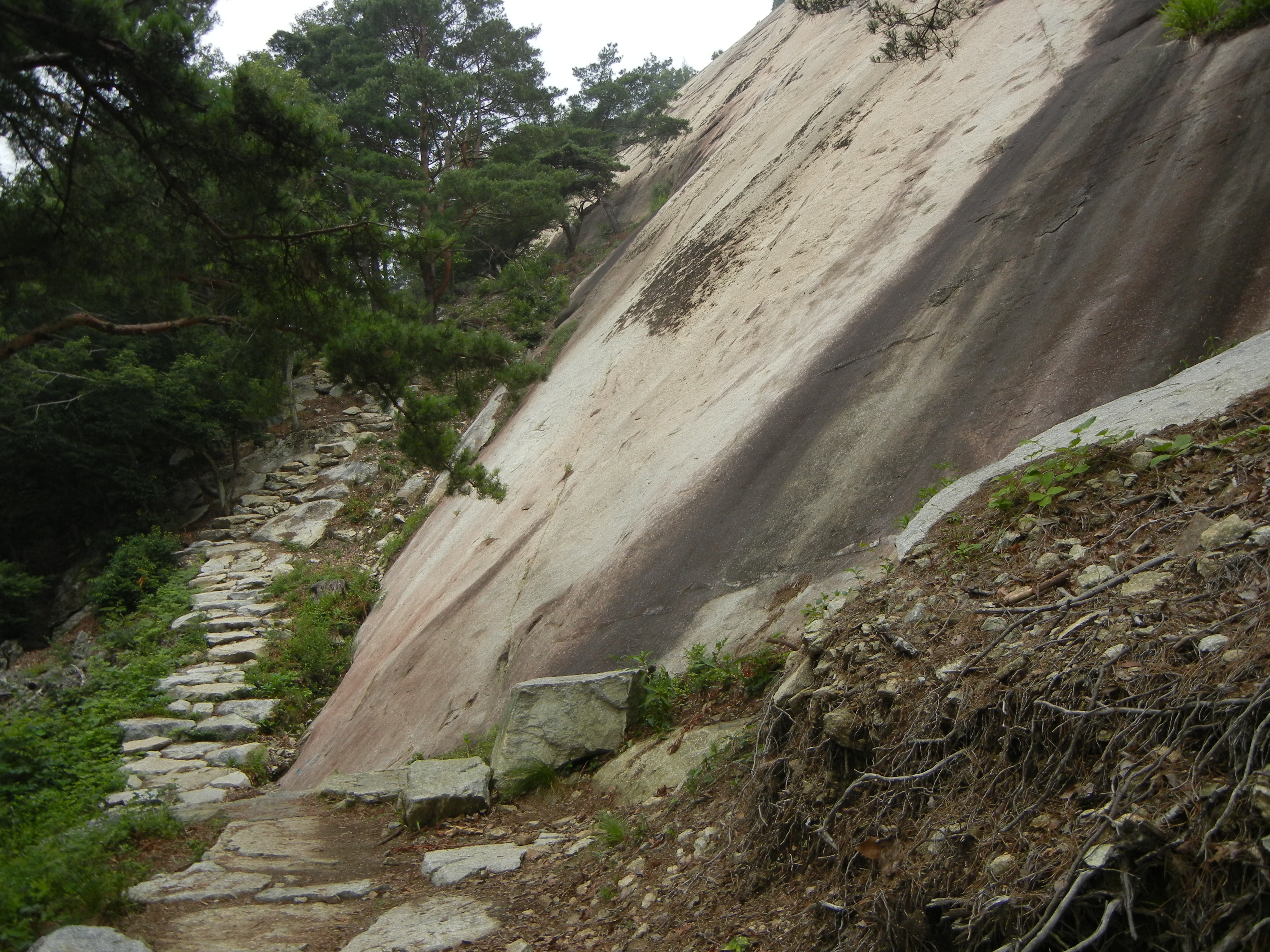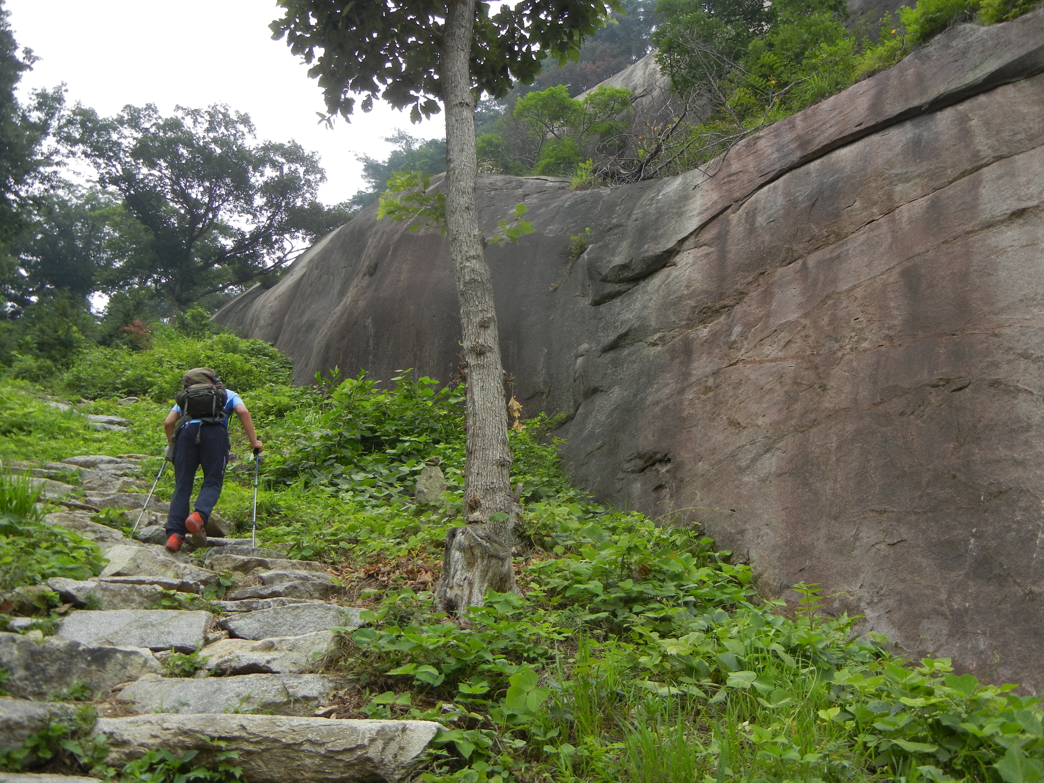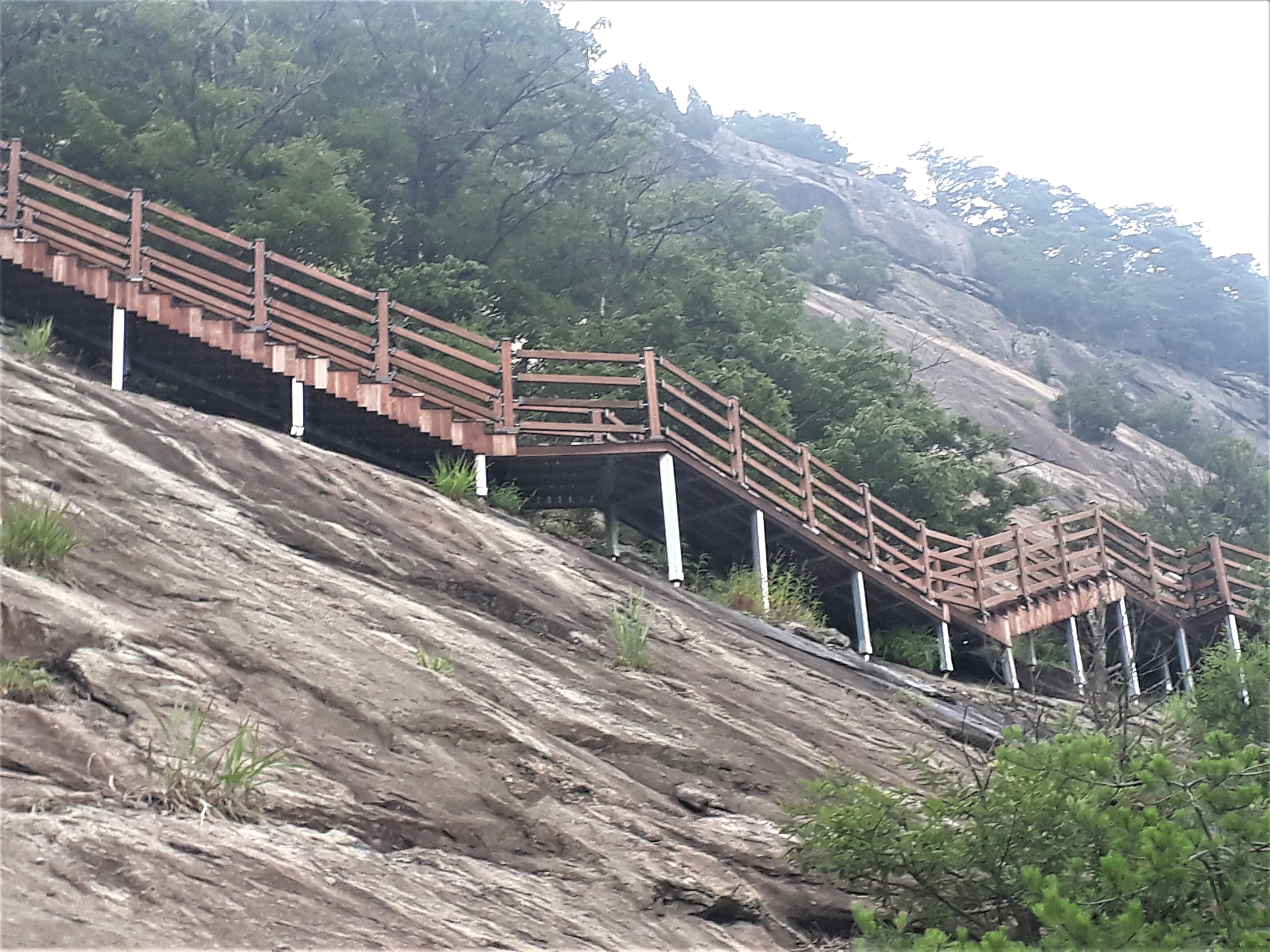 거대한 화강암 통바위에서 좌측으로 우회해 돌계단따라 오르고