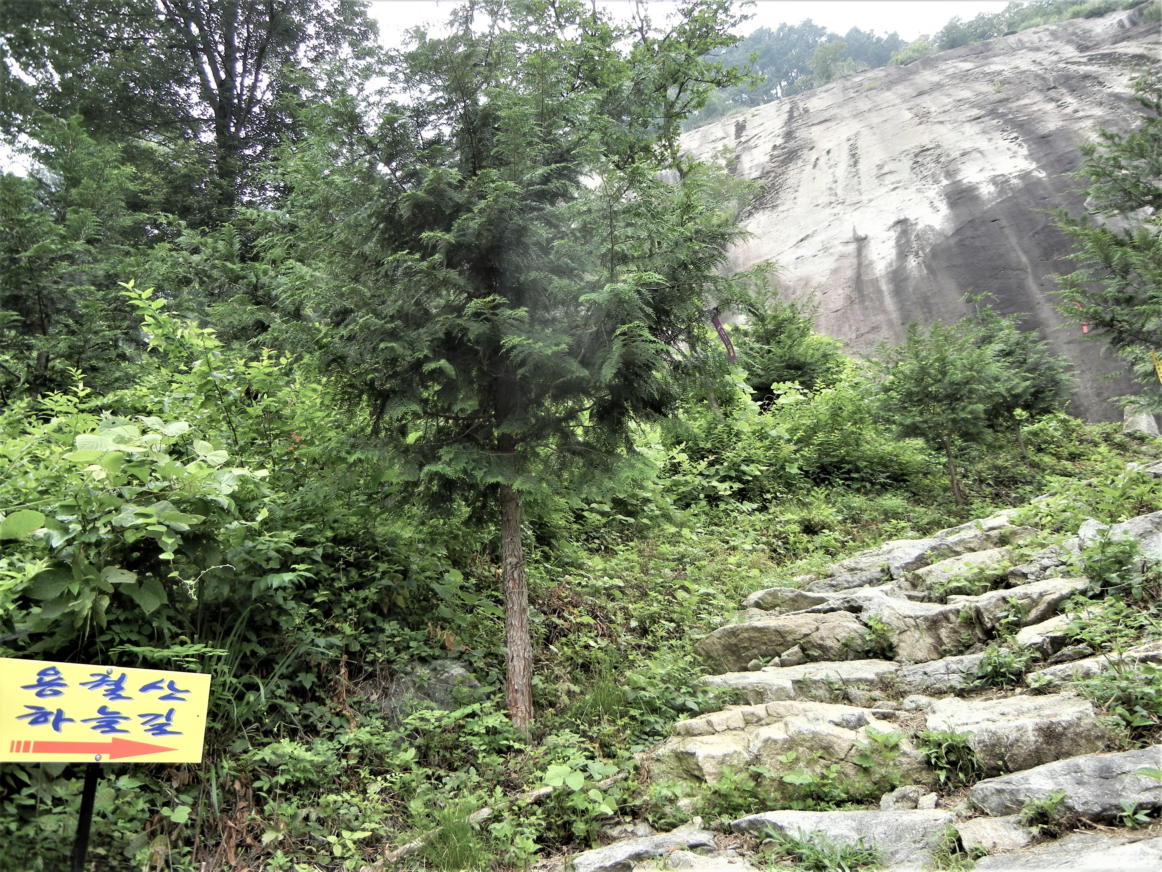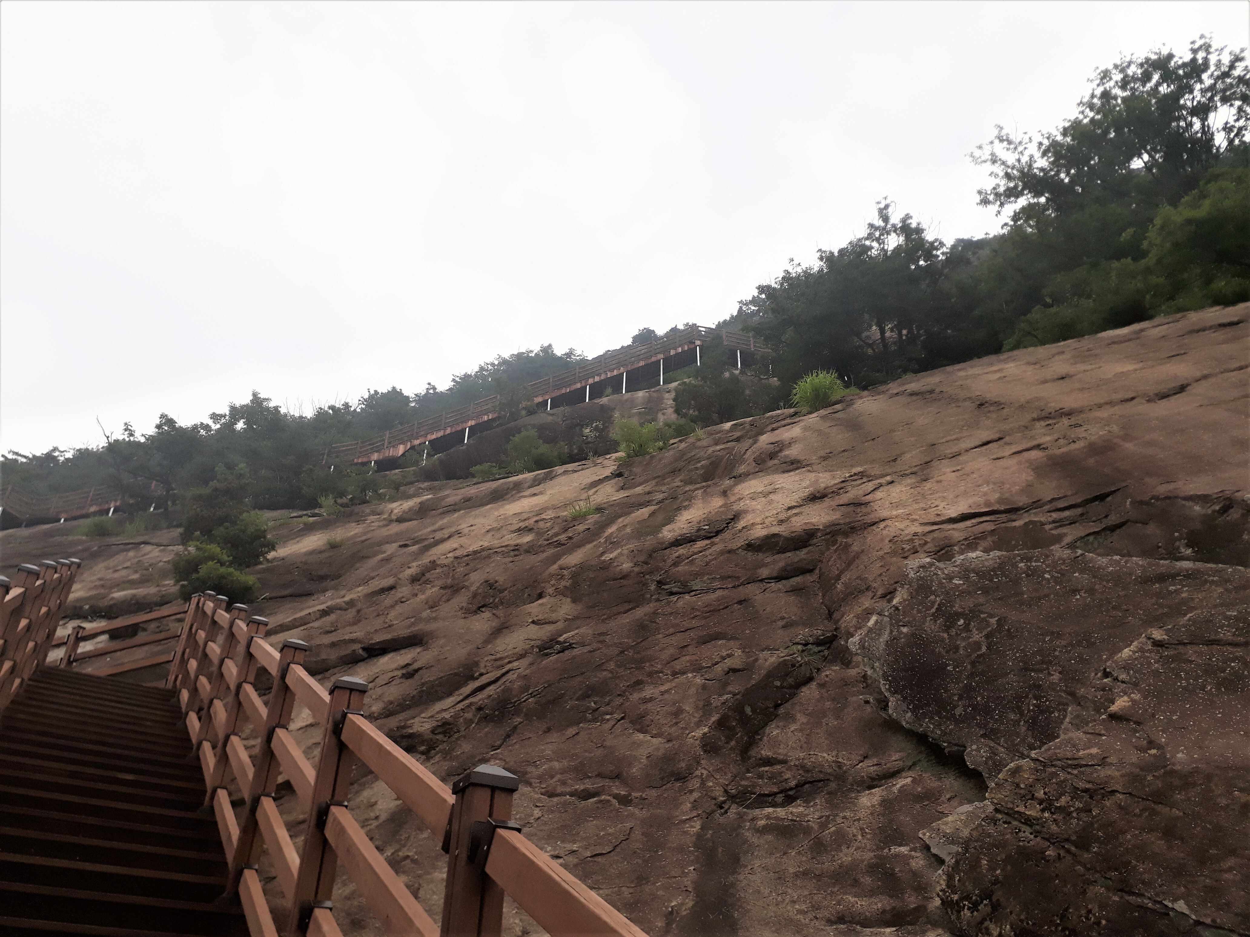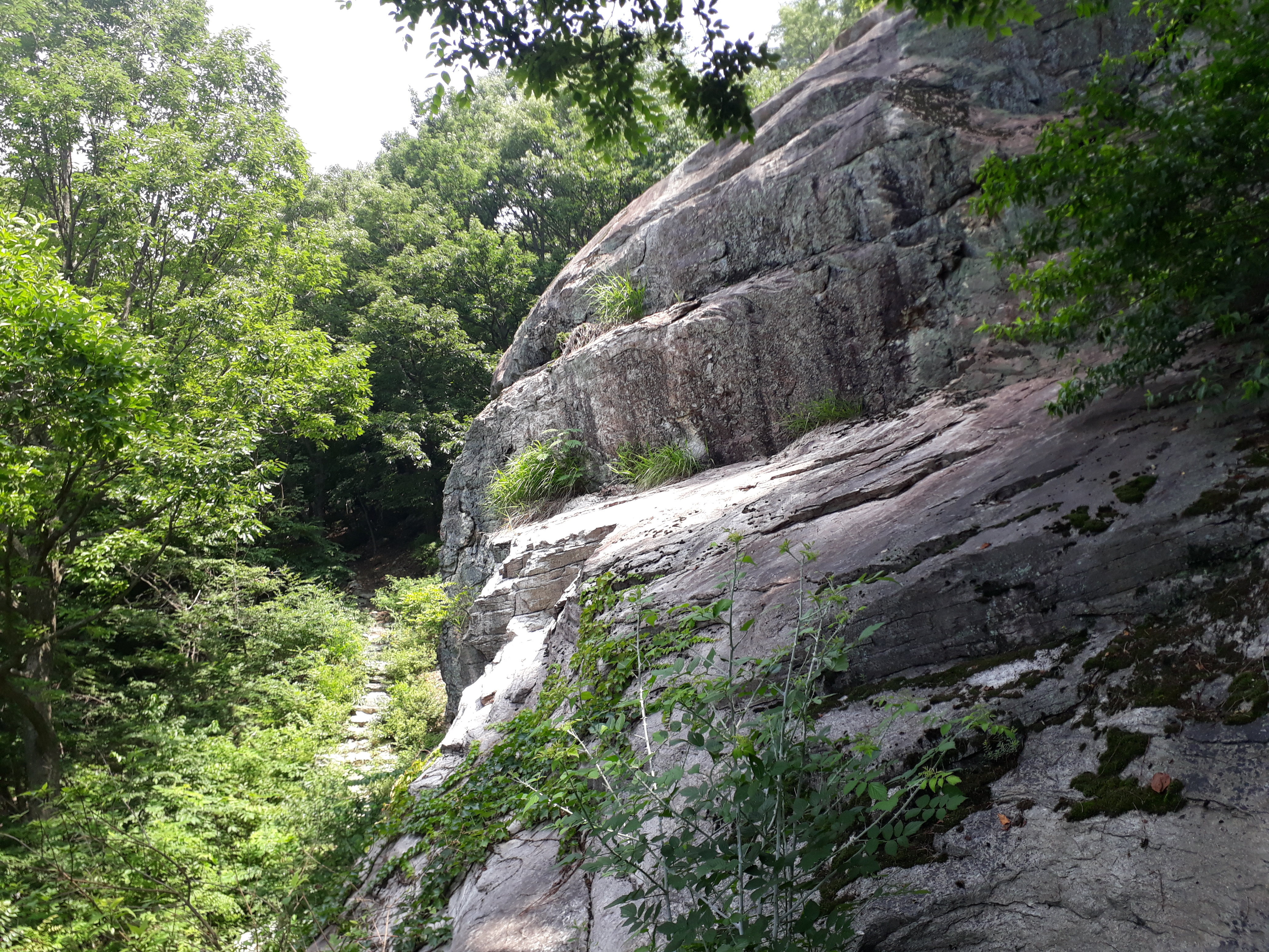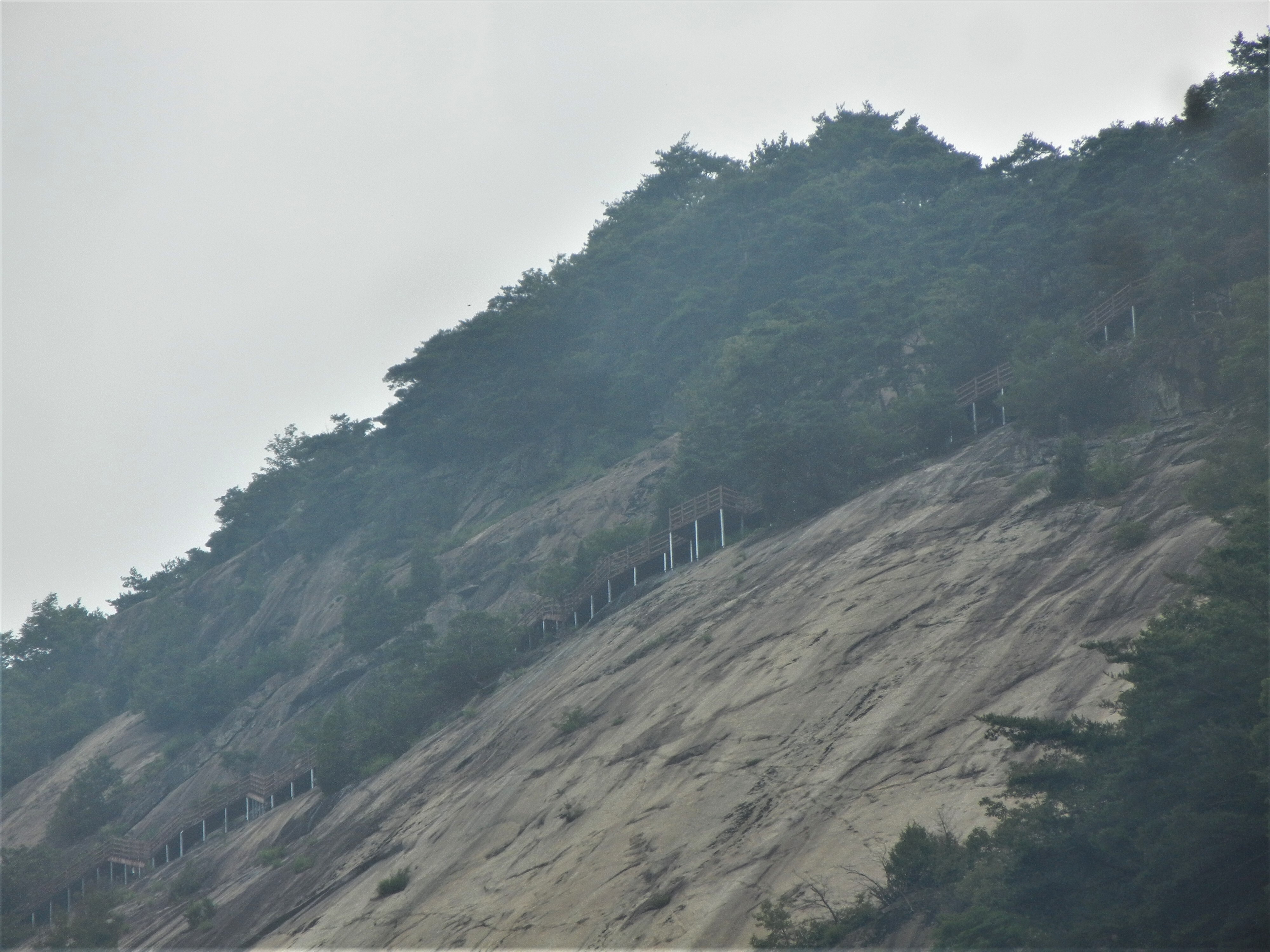 거대한 화강암 통바위에서 좌측으로 우회해 돌계단따라 오르고
