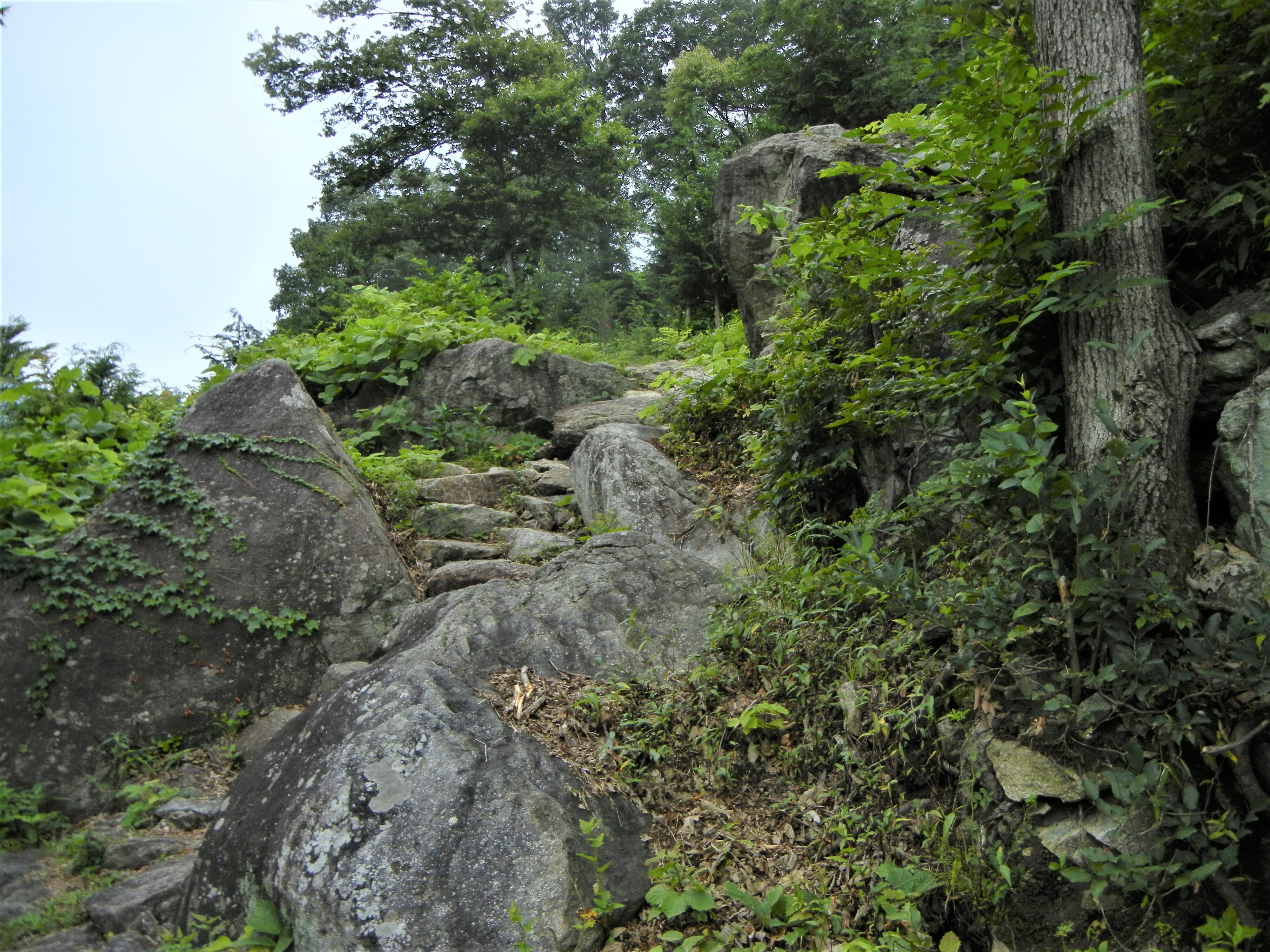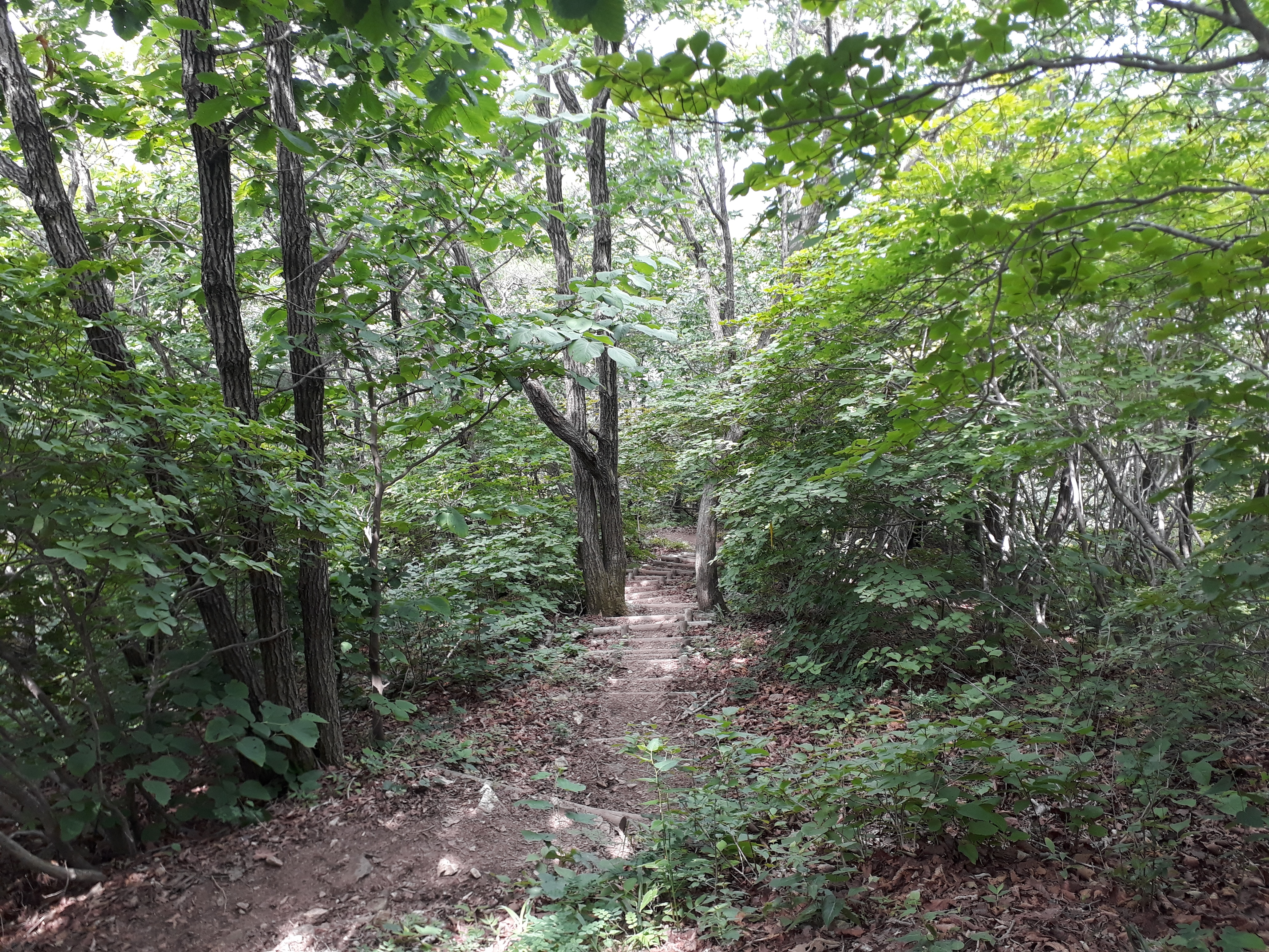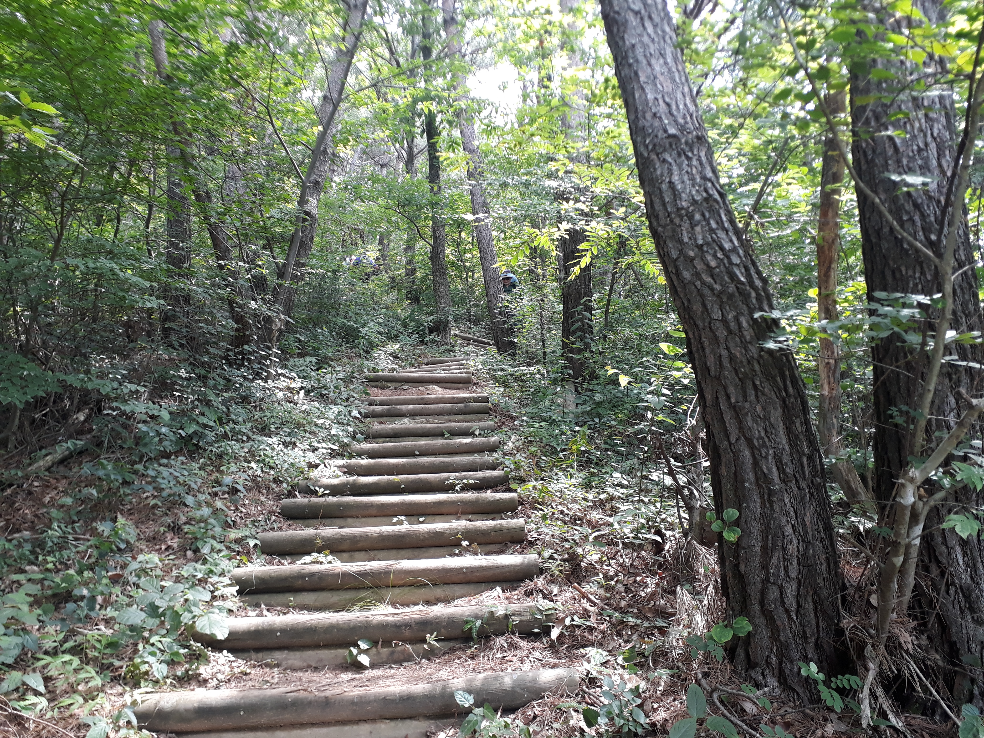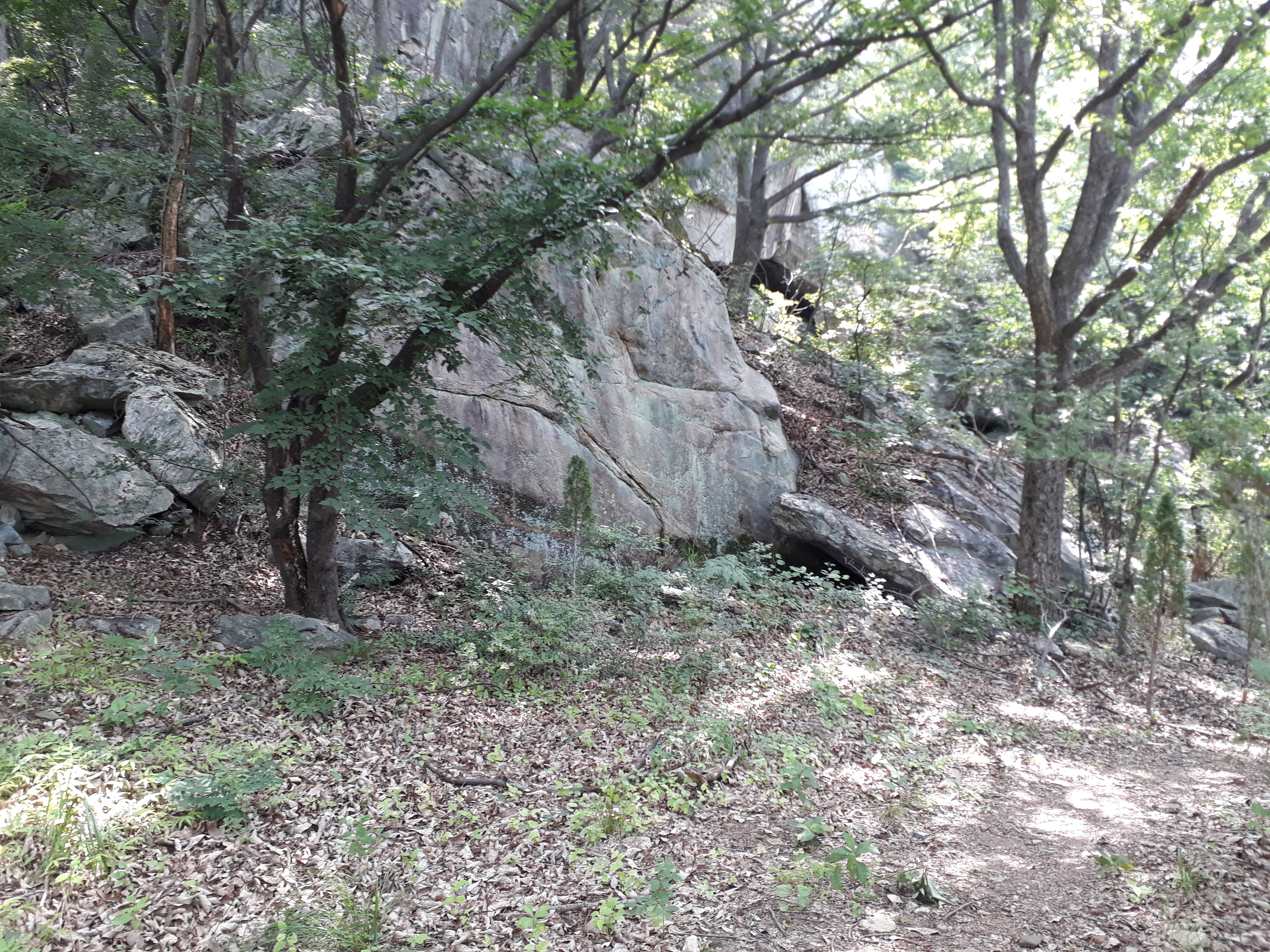 거대한 화강암 통바위에서 좌측으로 우회해 돌계단따라 오르고