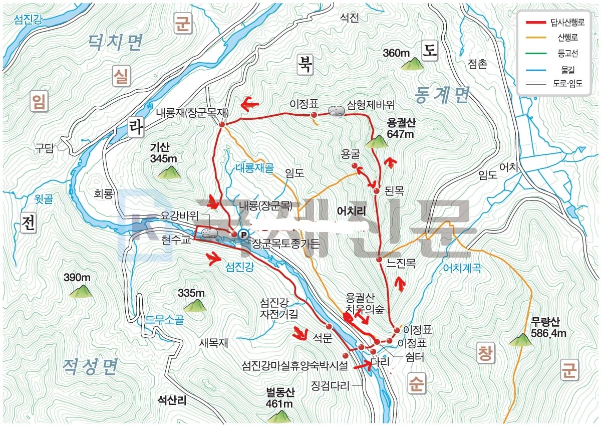 ○ 적성강이라 부르는 순창의 섬진강을 끼고 솟아있는 용궐산(龍闕山·647m)은