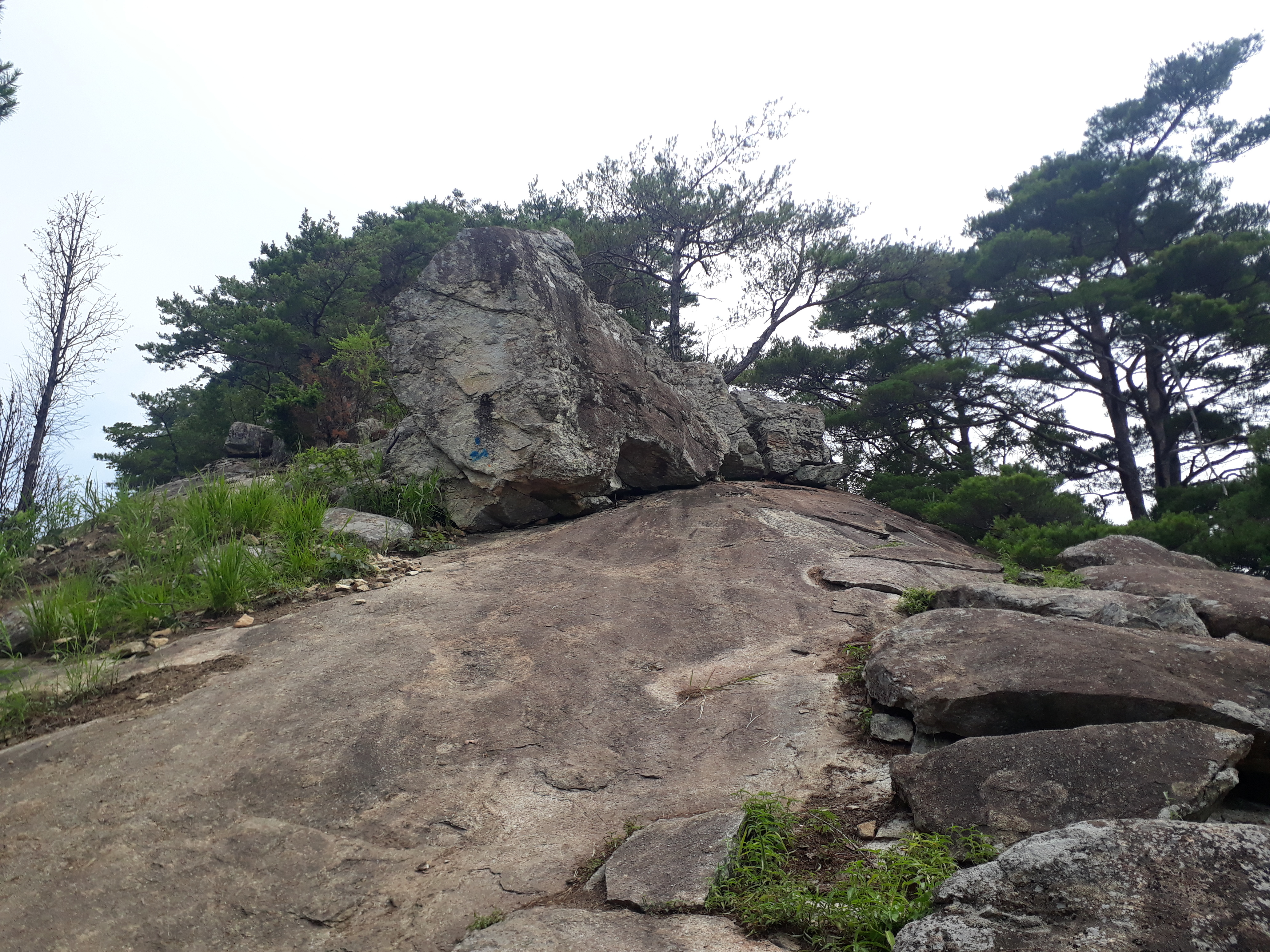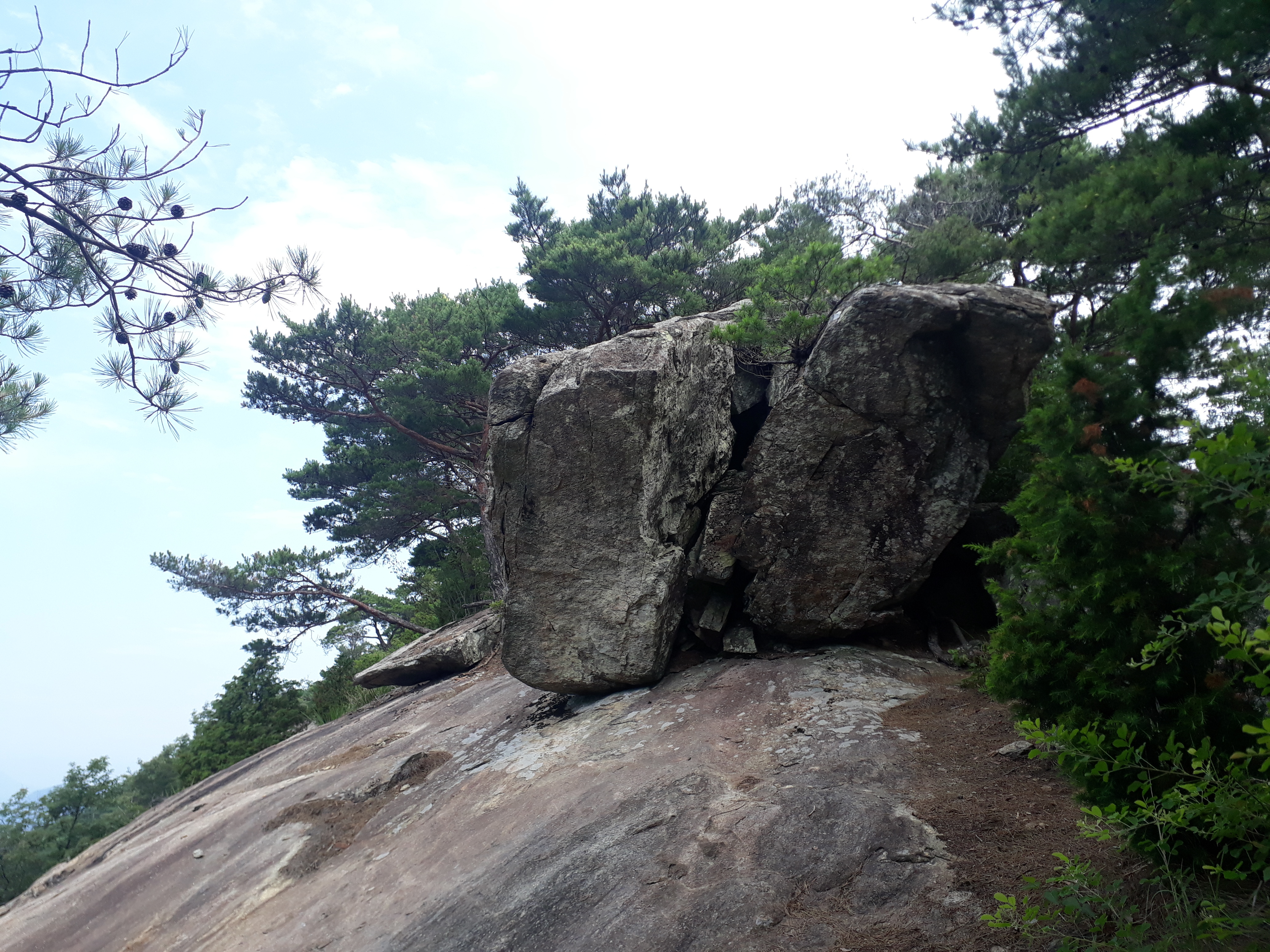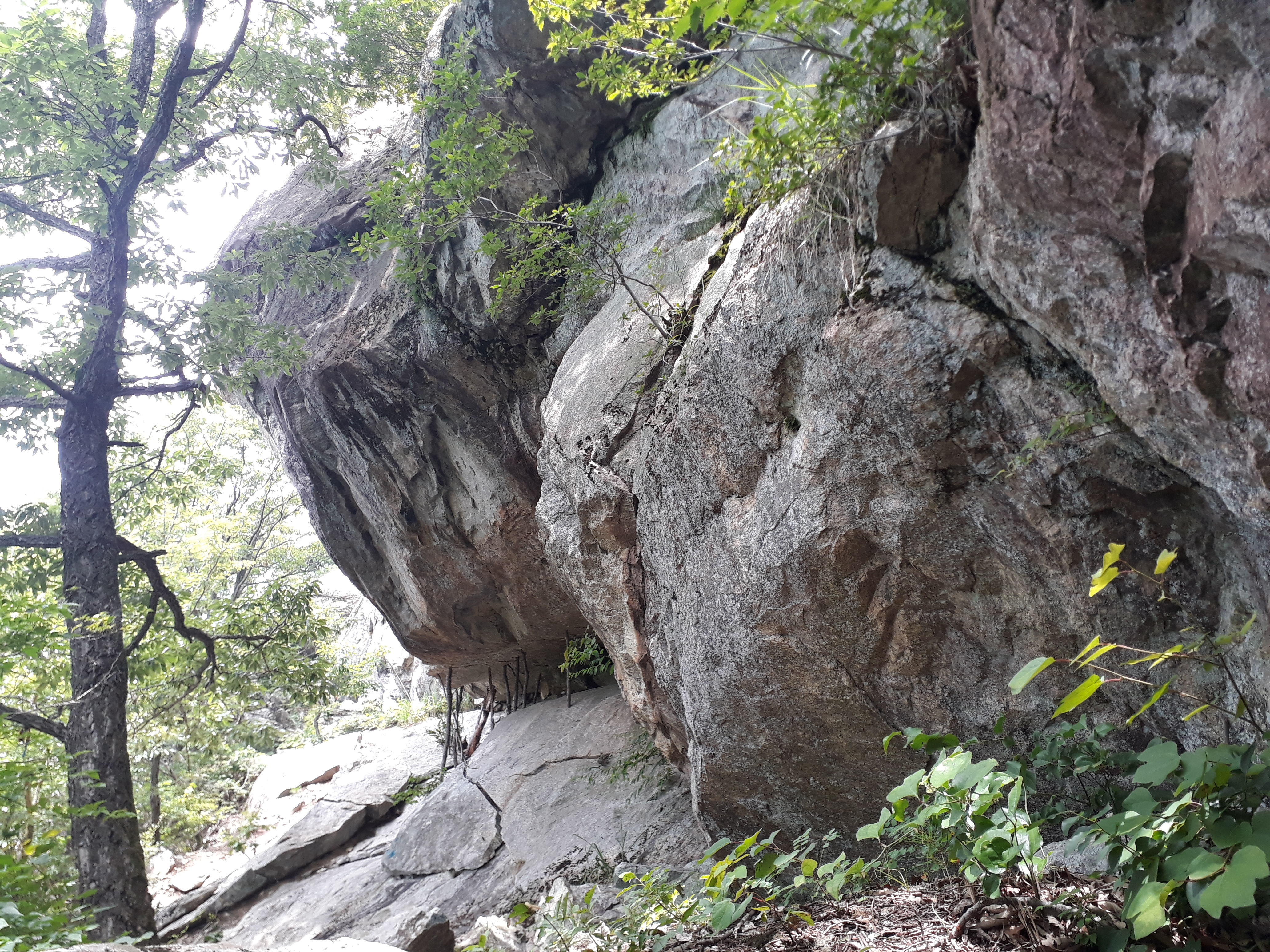 - 화강암 통바위로 되어 있는 허리쯤에 초대형 슬랩이 튀어나와 있고 이곳