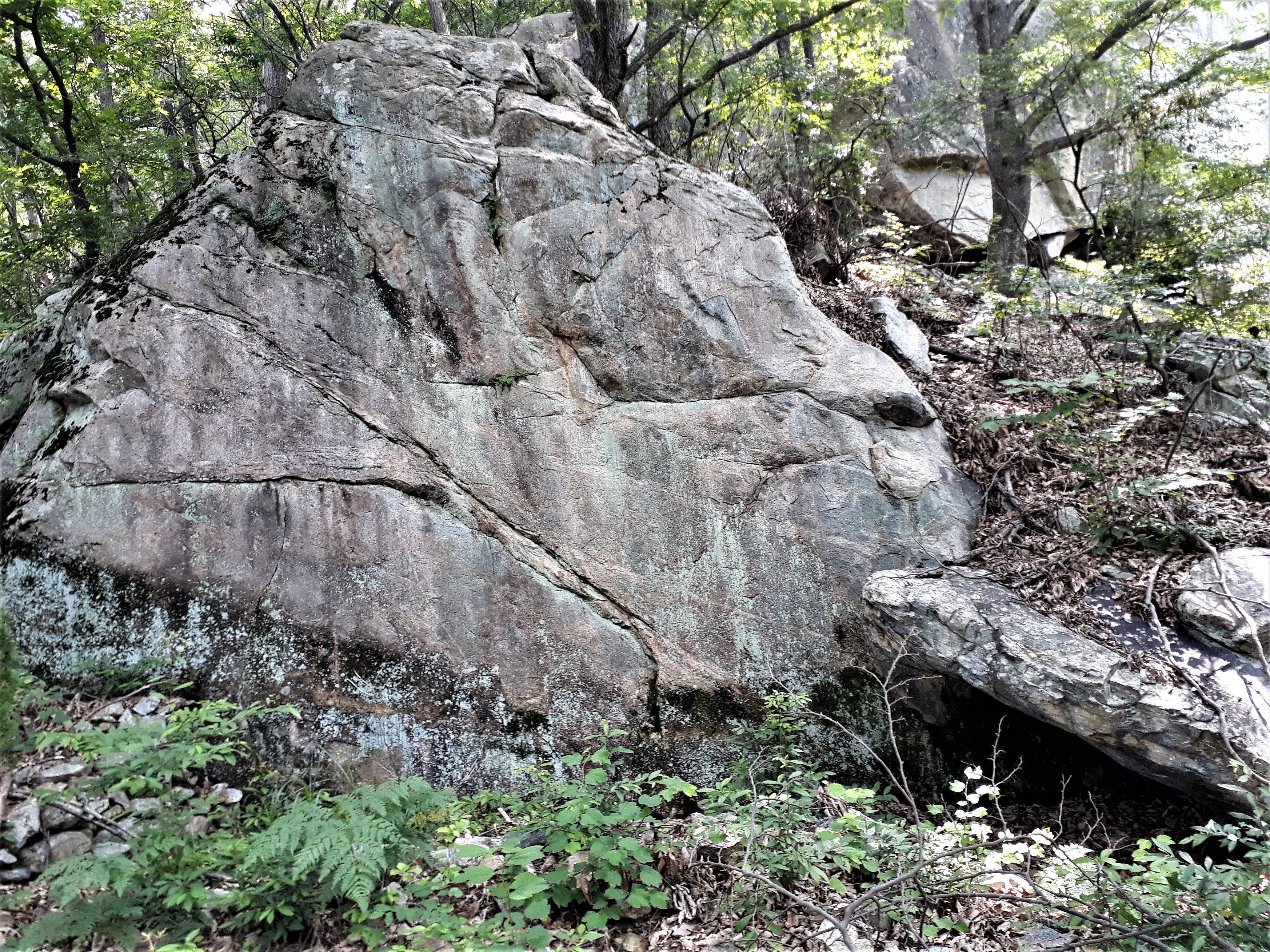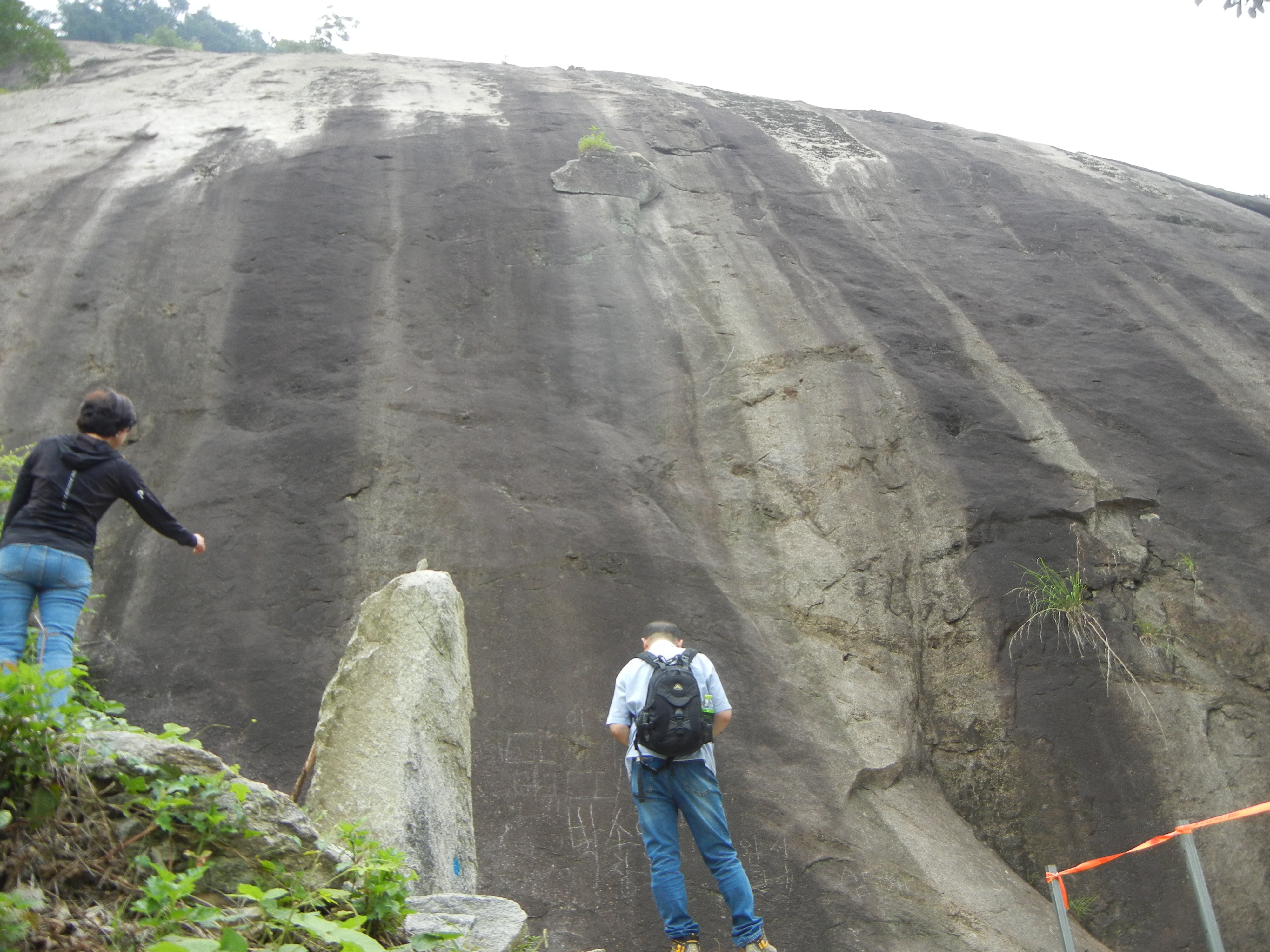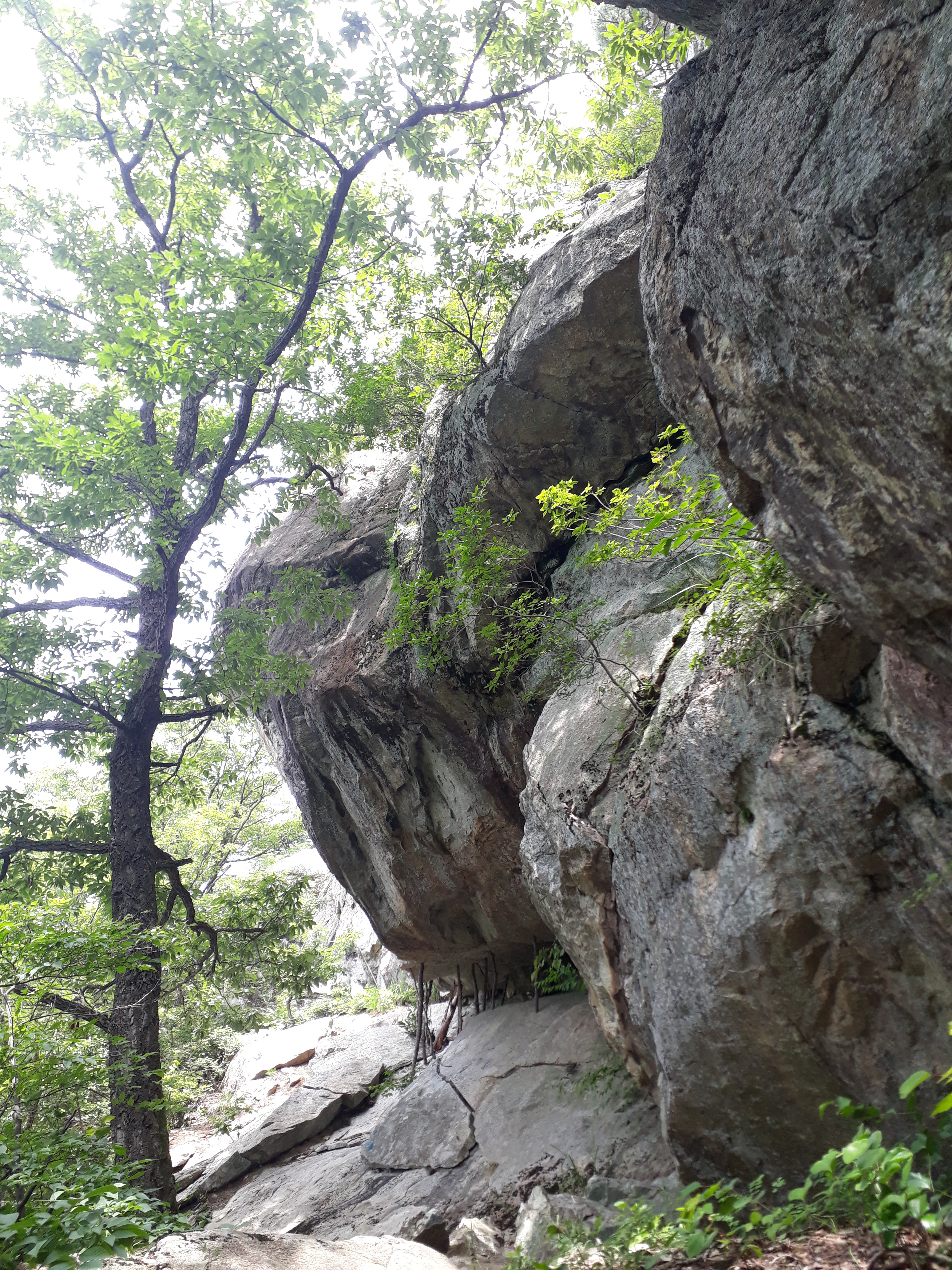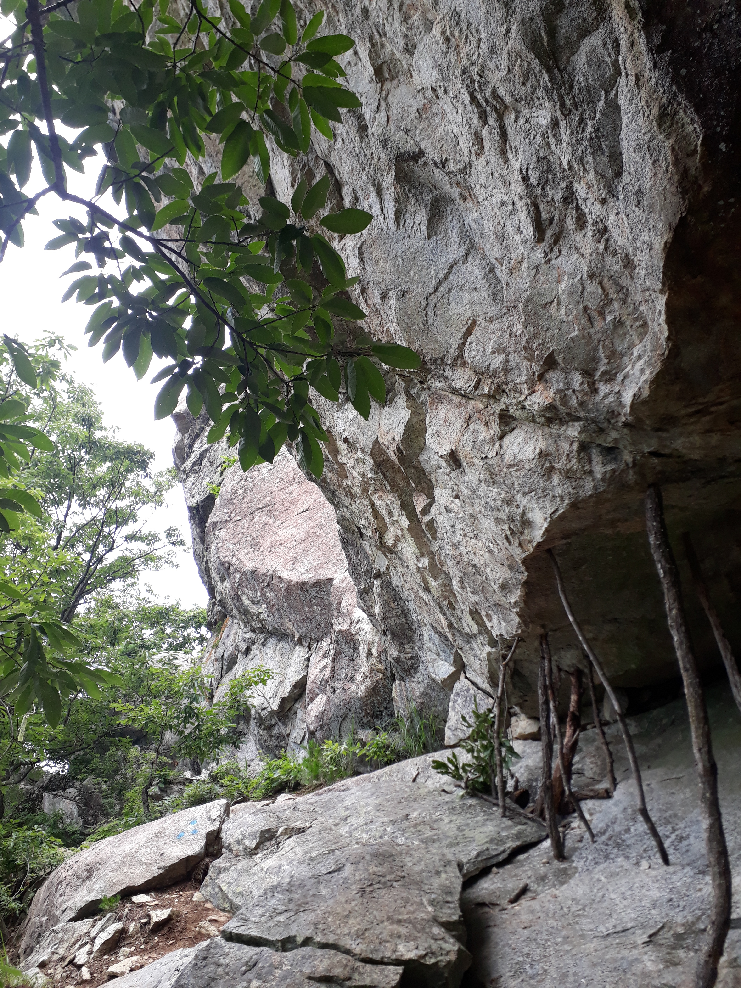 - 화강암 통바위로 되어 있는 허리쯤에 초대형 슬랩이 튀어나와 있고 이곳