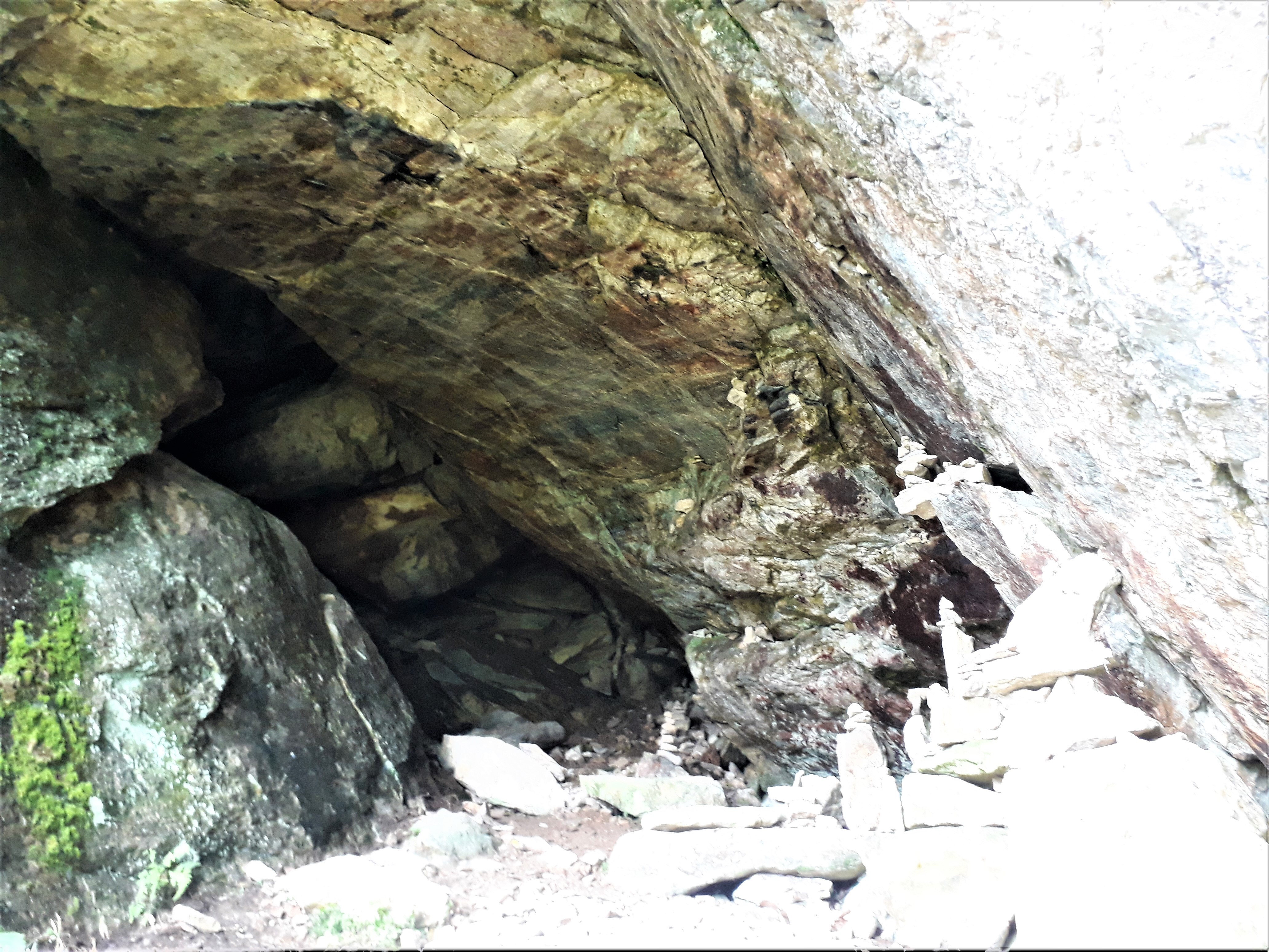내부에 기도한 흔적과 소돌탑이 있고 우측 천정으로 빛이 들어오는 돌구멍이 뚫혀있는 용굴.