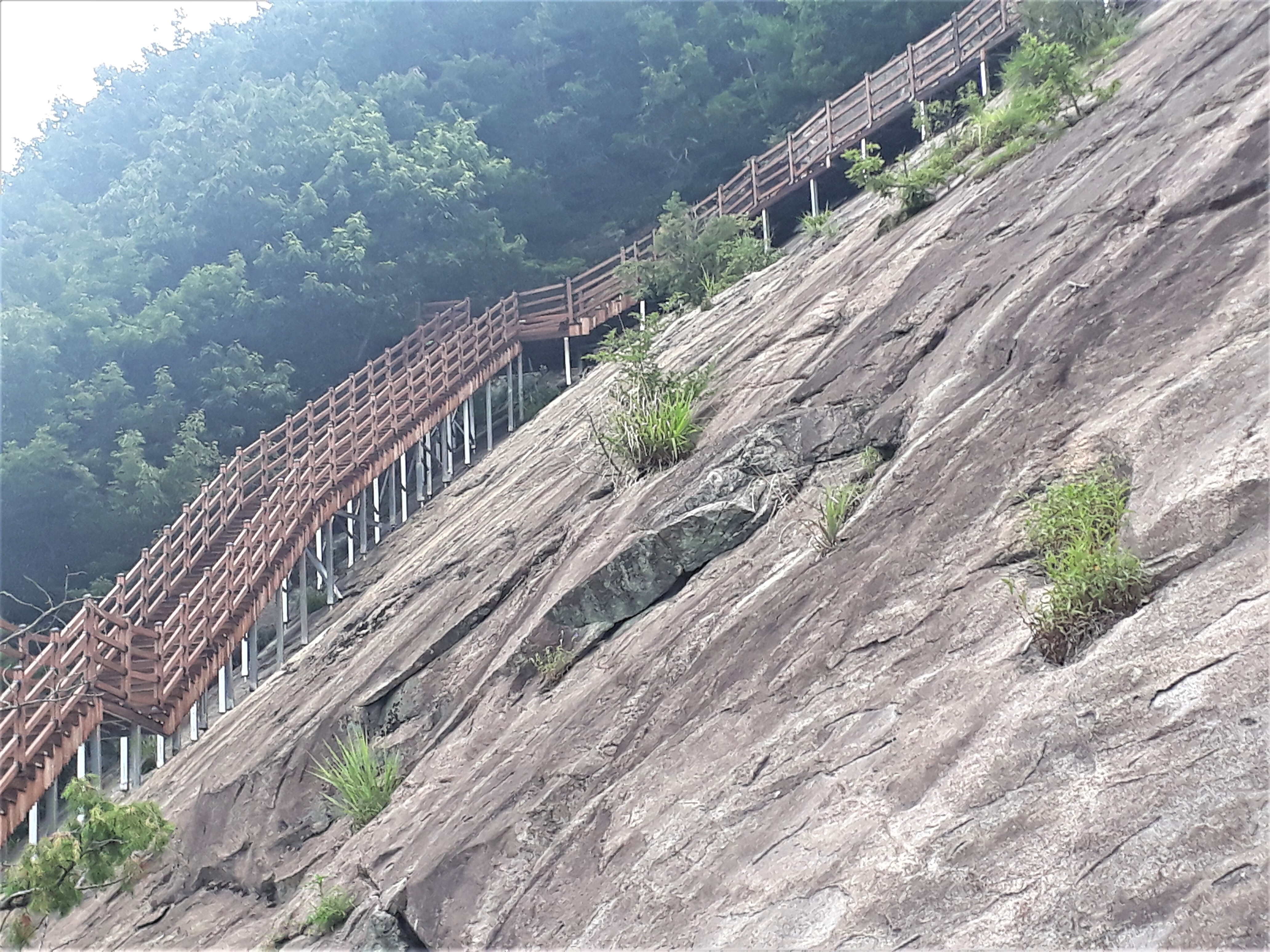 ○ 대슬램 하늘길(거대 화강암 통바위/돌계단길)-棧道(데크길)(365계단/550m)