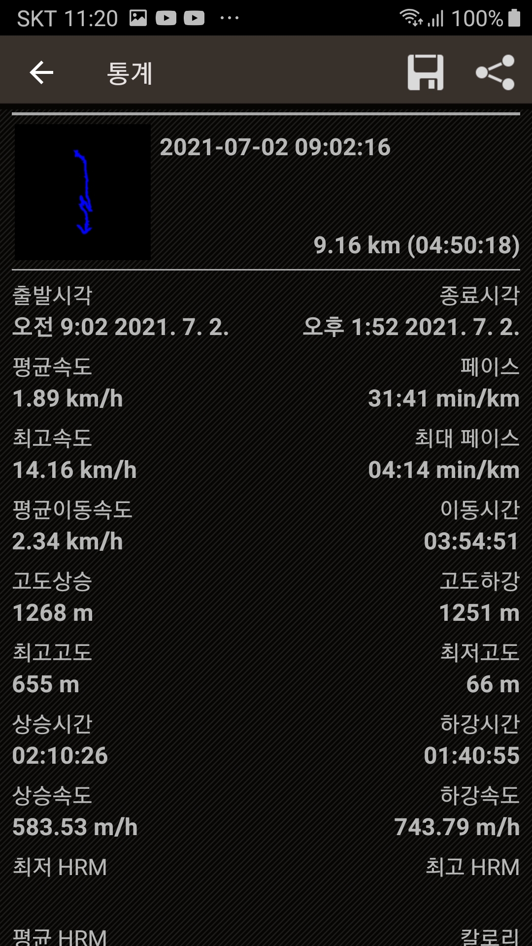 실제 진행한 산행 기록지도 (구글과 로커스 및 오룩스맵)와 통계기록