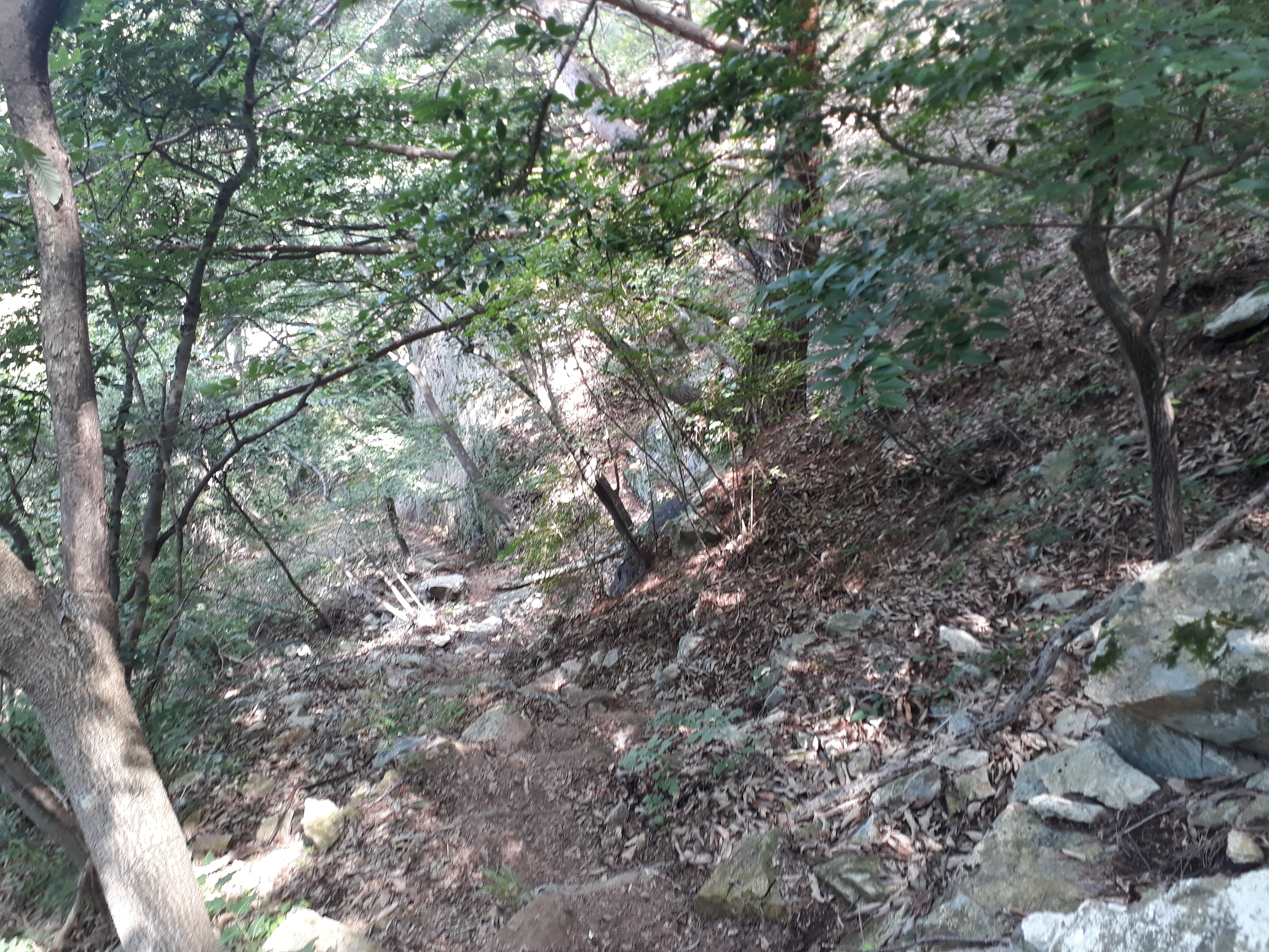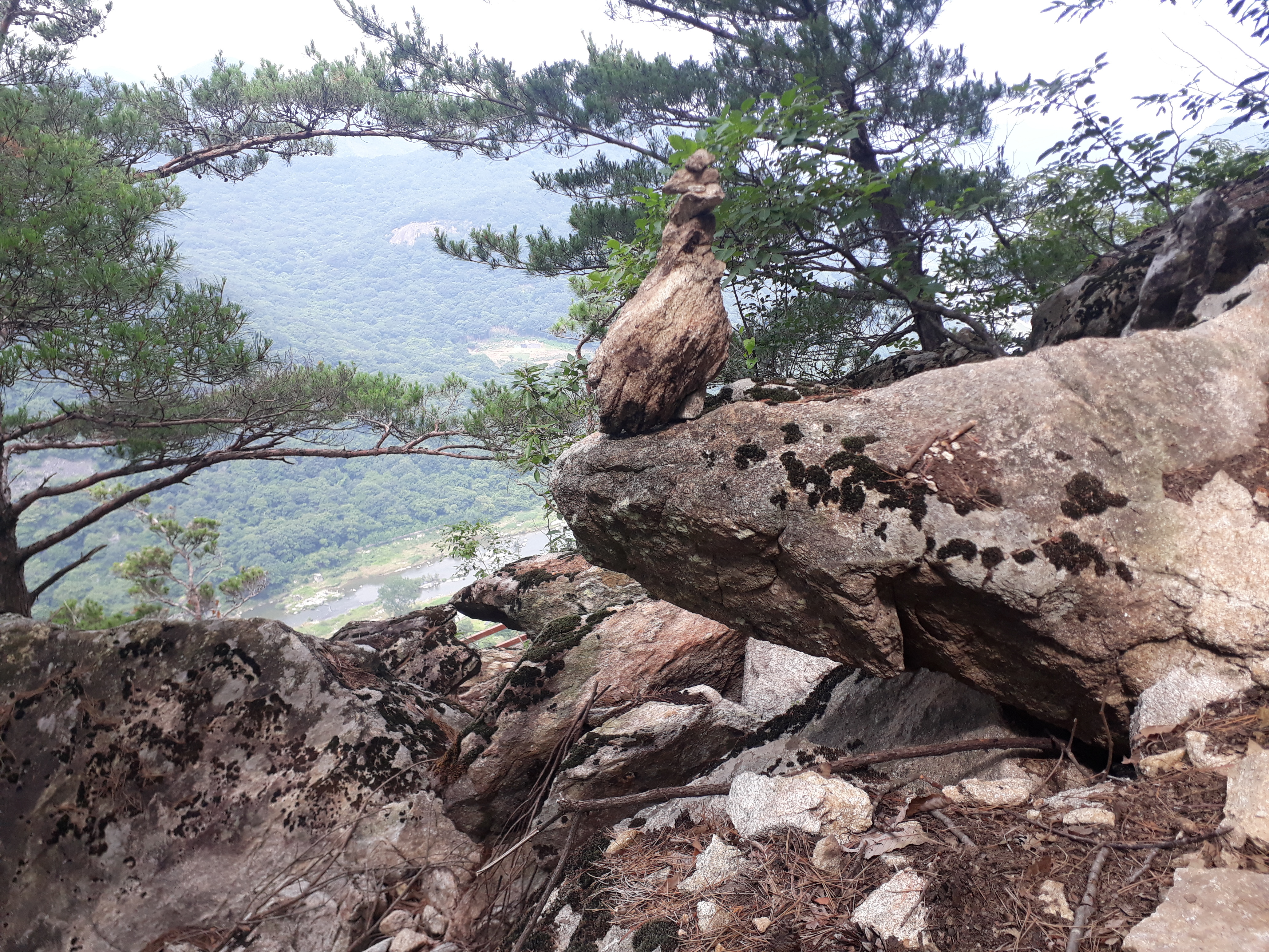 - 목계단 로프가드 하산길-능선(중식)-삼형제바위(거암,받침목)-로프구간-