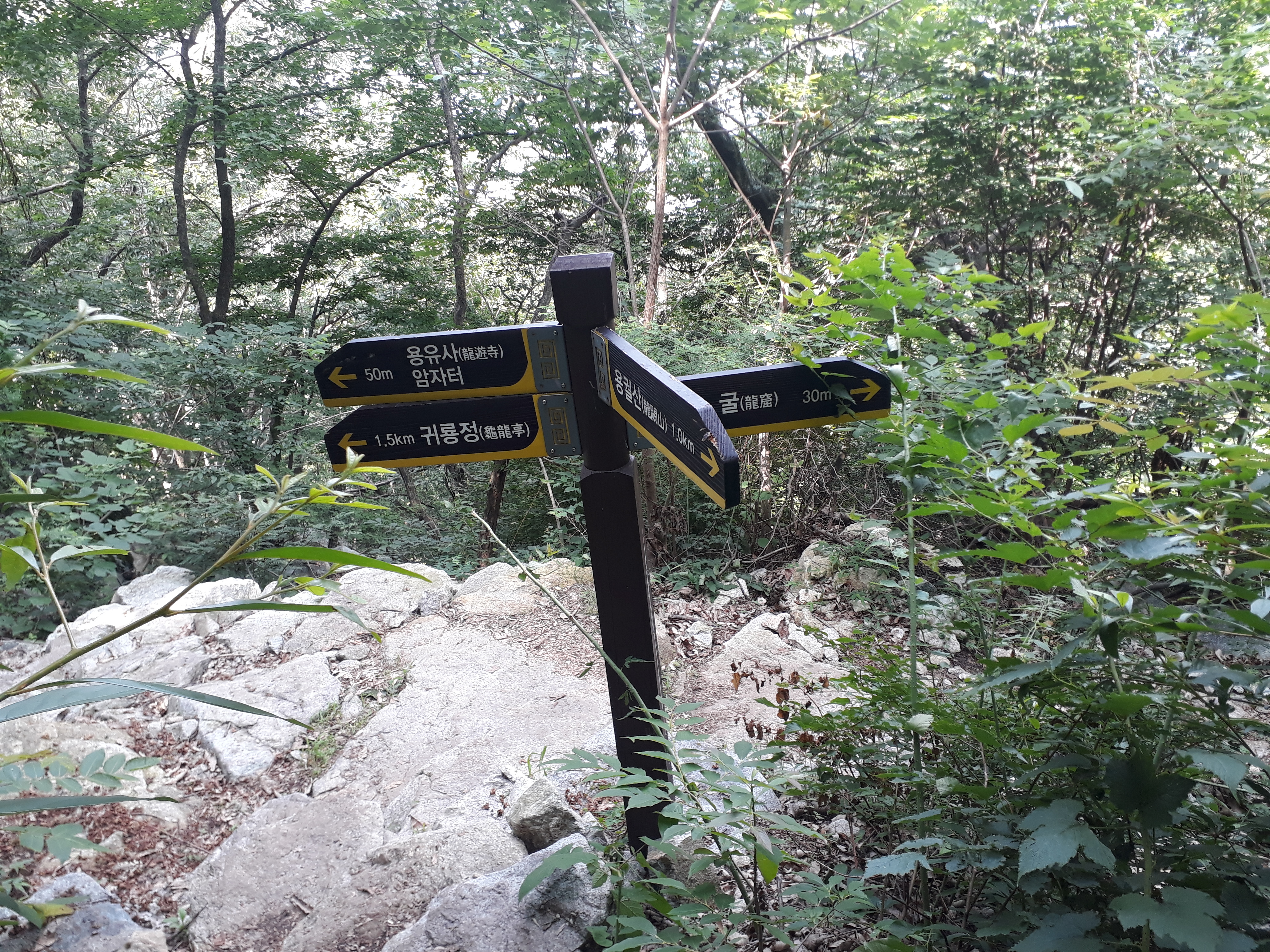 용굴과 용유사암자터를 보고 되올라와 된목에 복귀 후 잠시 통목계단따라 오른다.