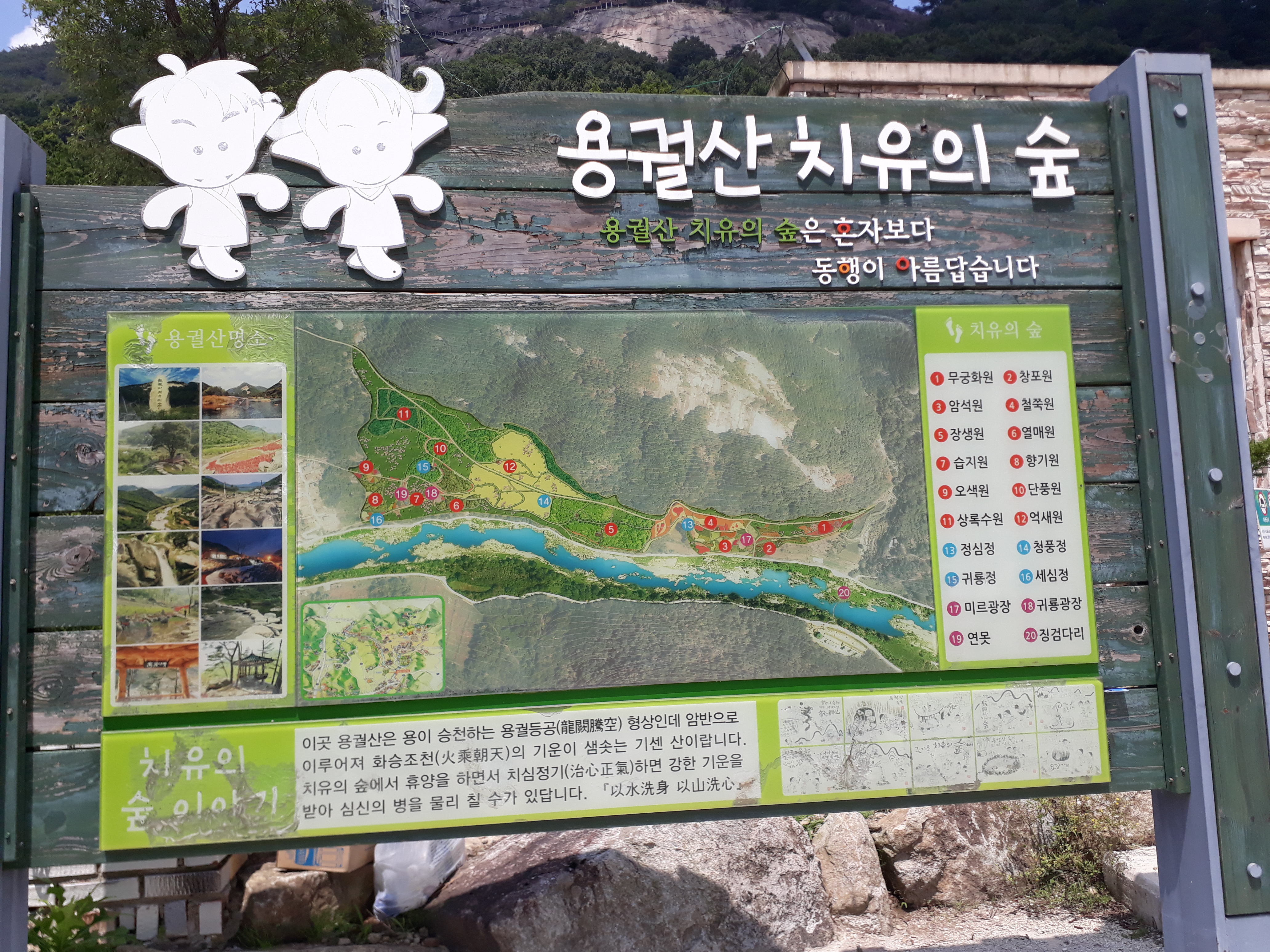 샘솟는 기센 산이랍니다. 치유의 숲에서 휴양을 하면서 치심정기하면 강한 기운을 받아 심신의 병을 물리 칠 수 있답니다.