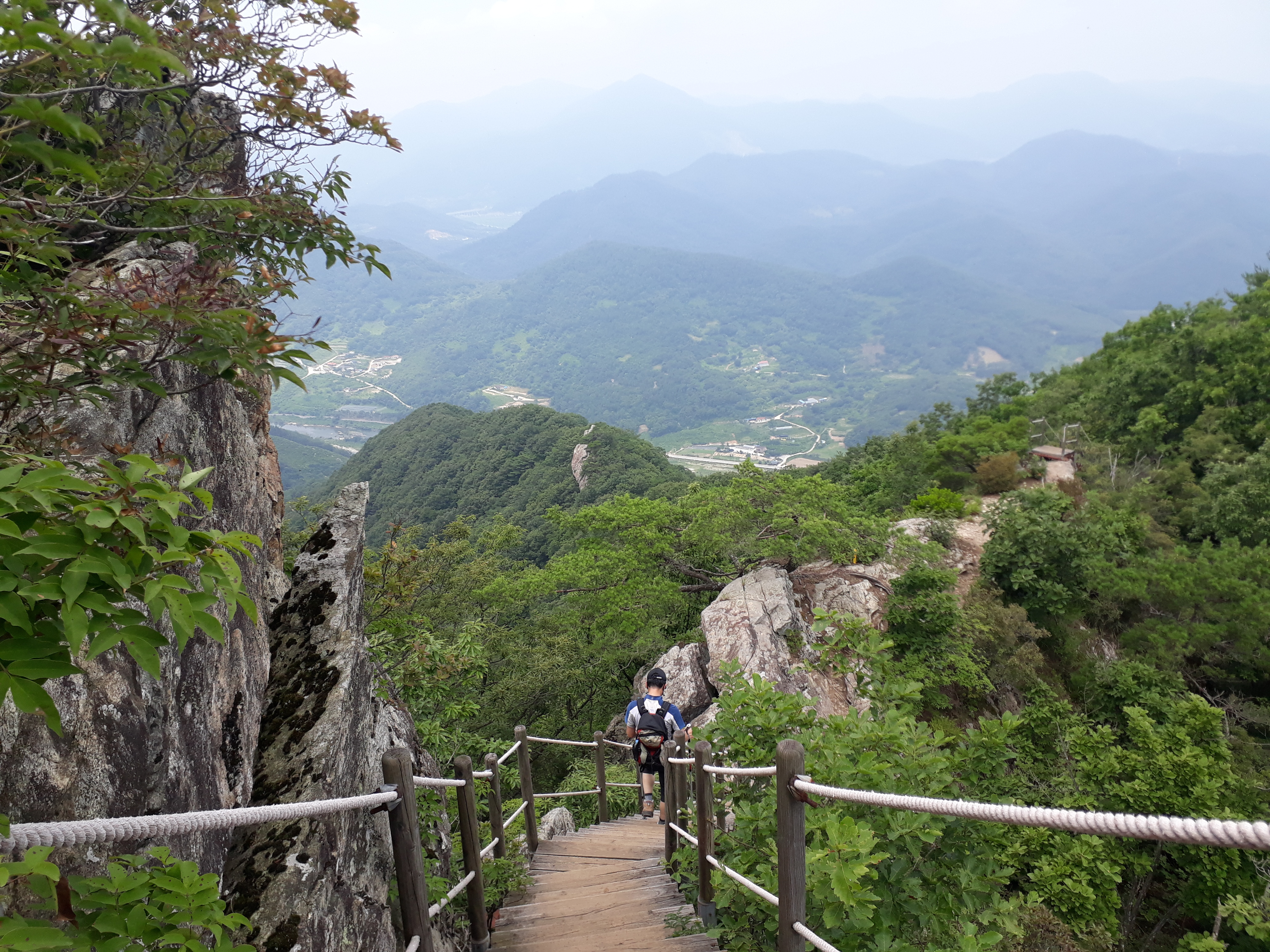 - 출렁다리를 지나 암릉길로 장군봉과 화산을 넘어 송대봉까지 올랐다가 내려