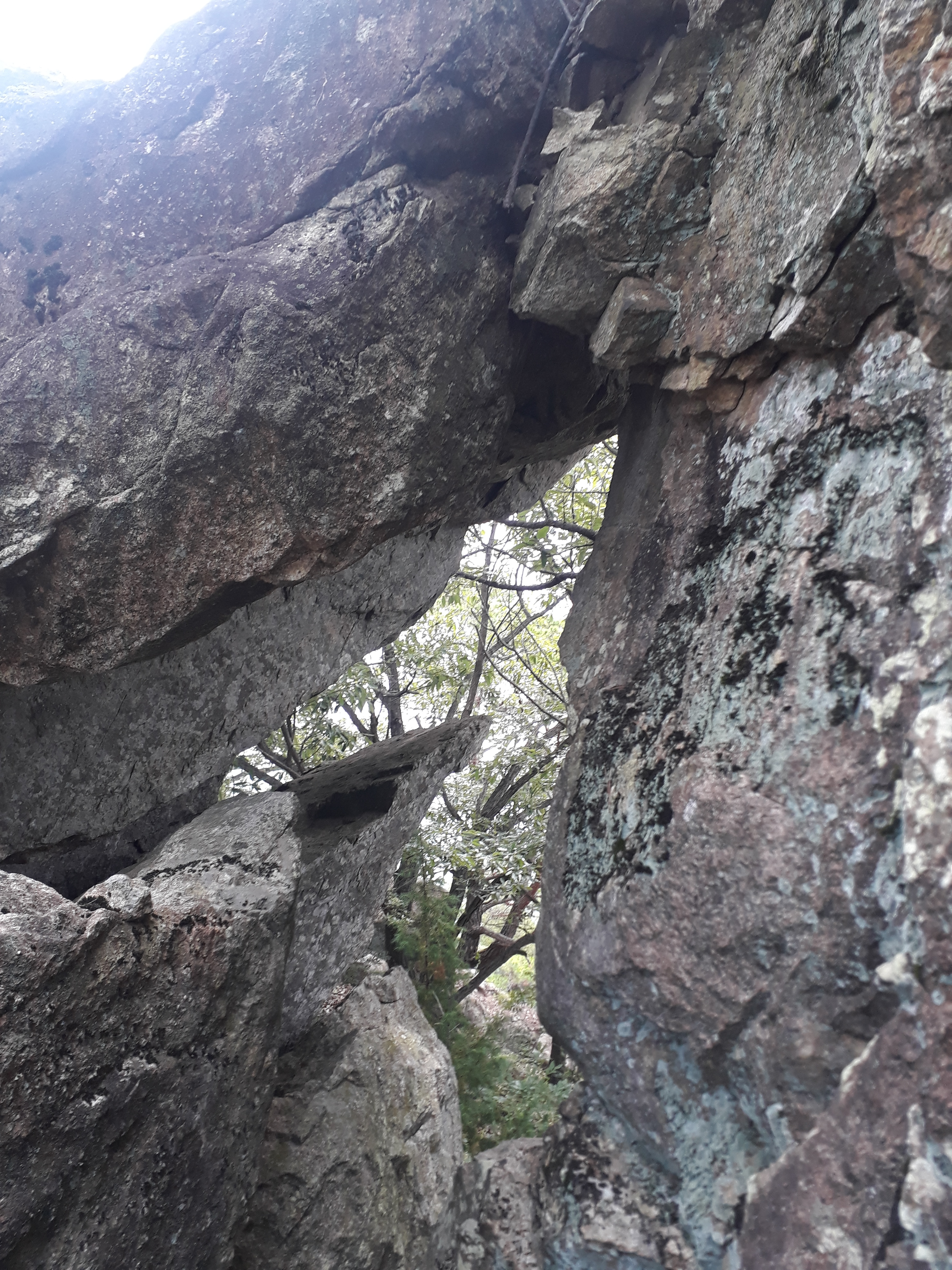비조암 위의 소돌탑을 지나 굴바위 옆으로 올라간다.