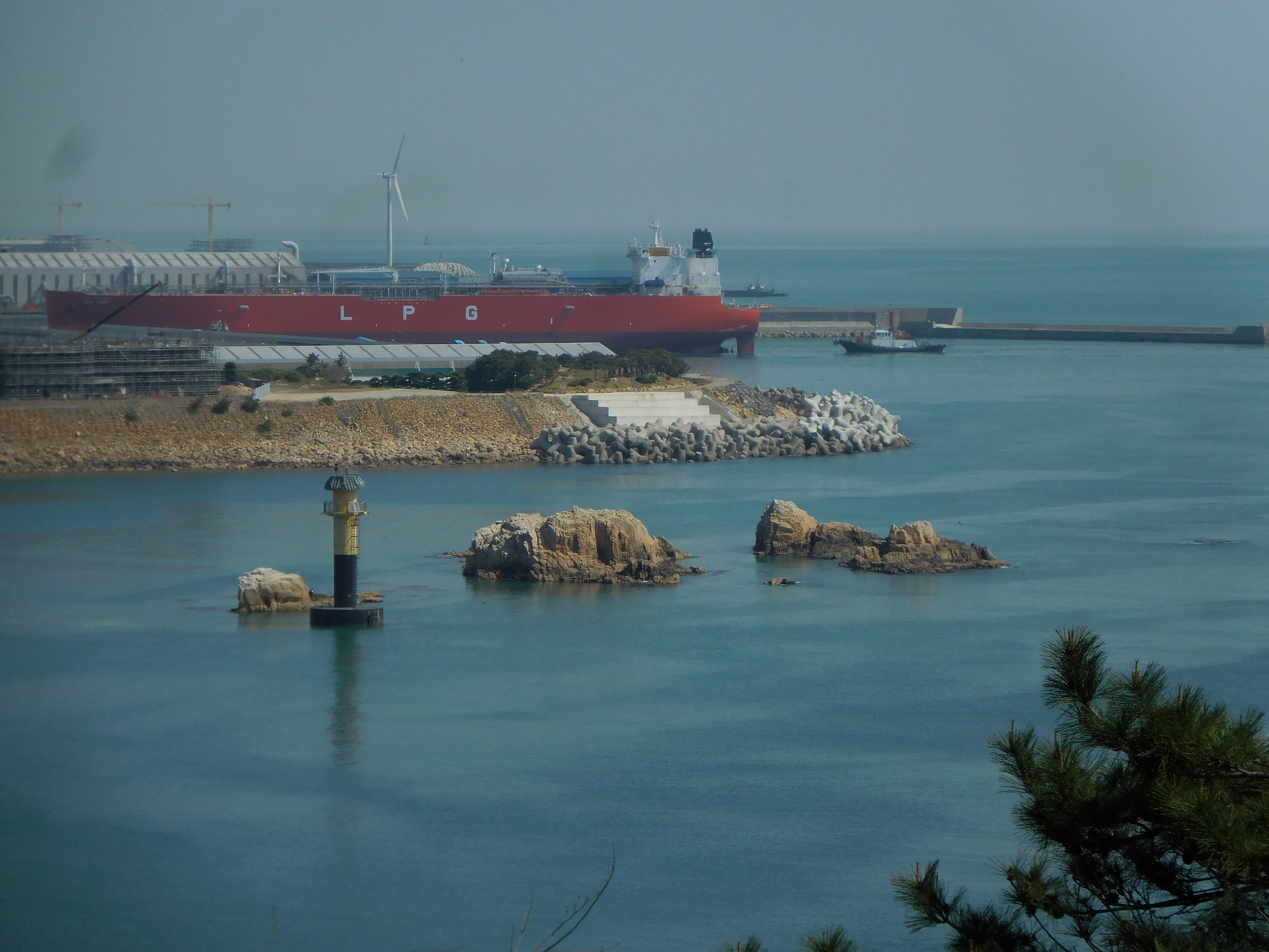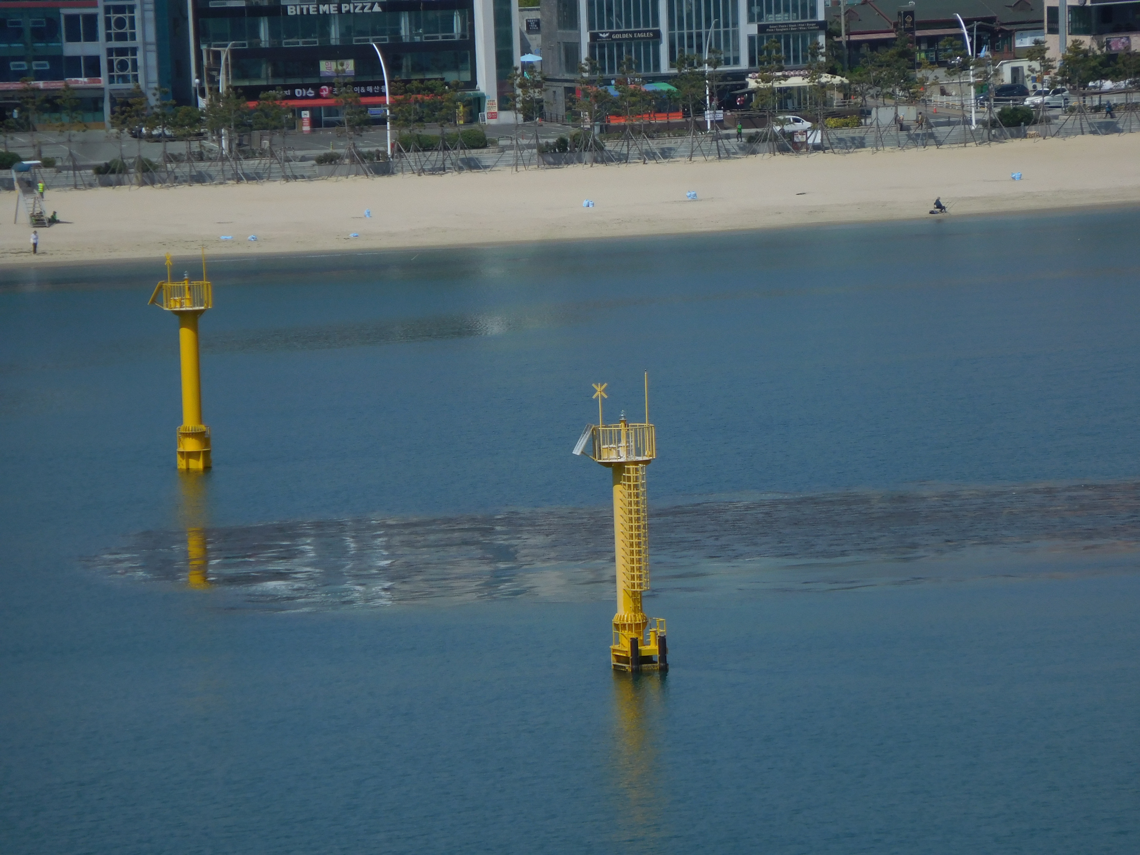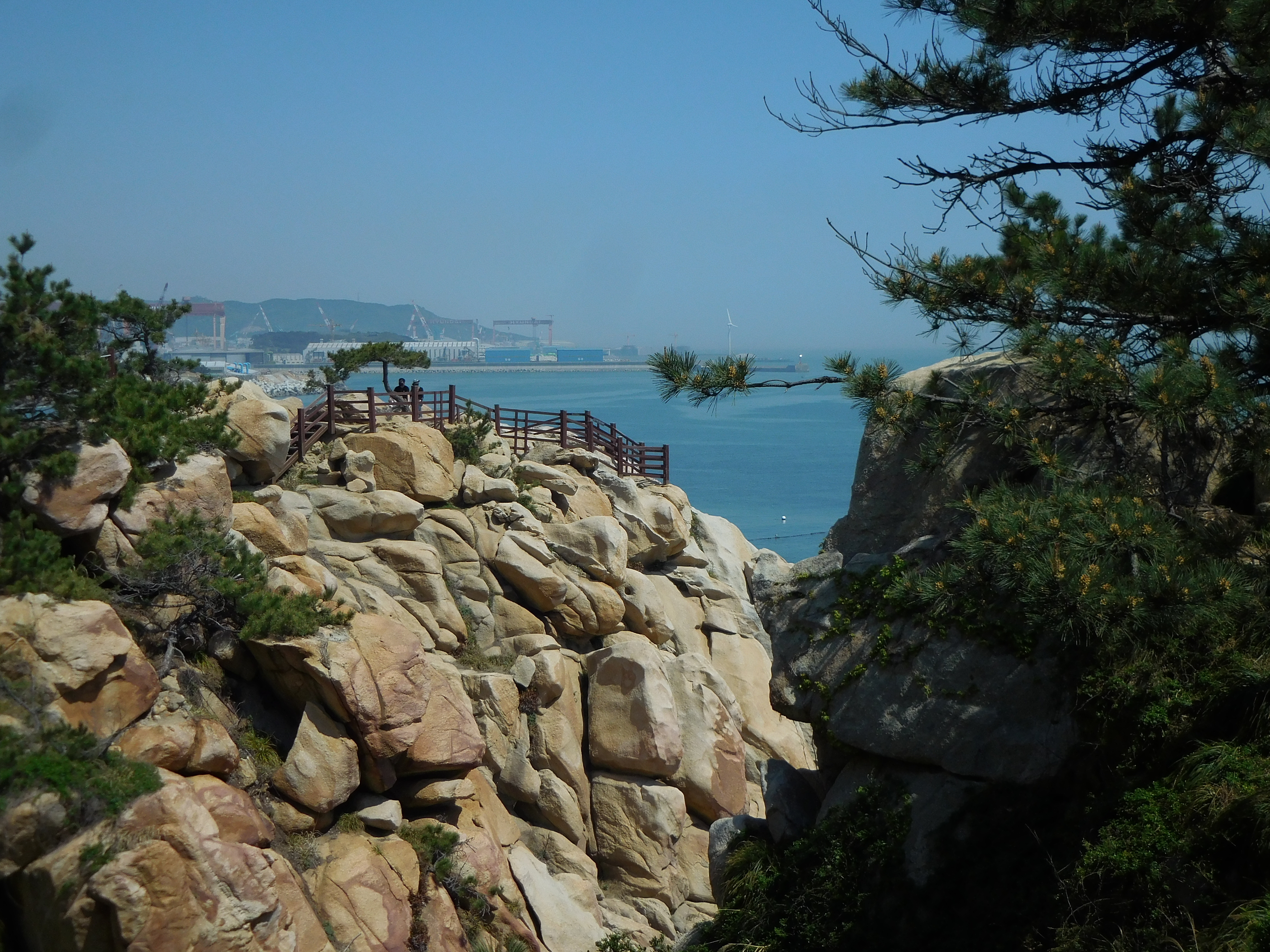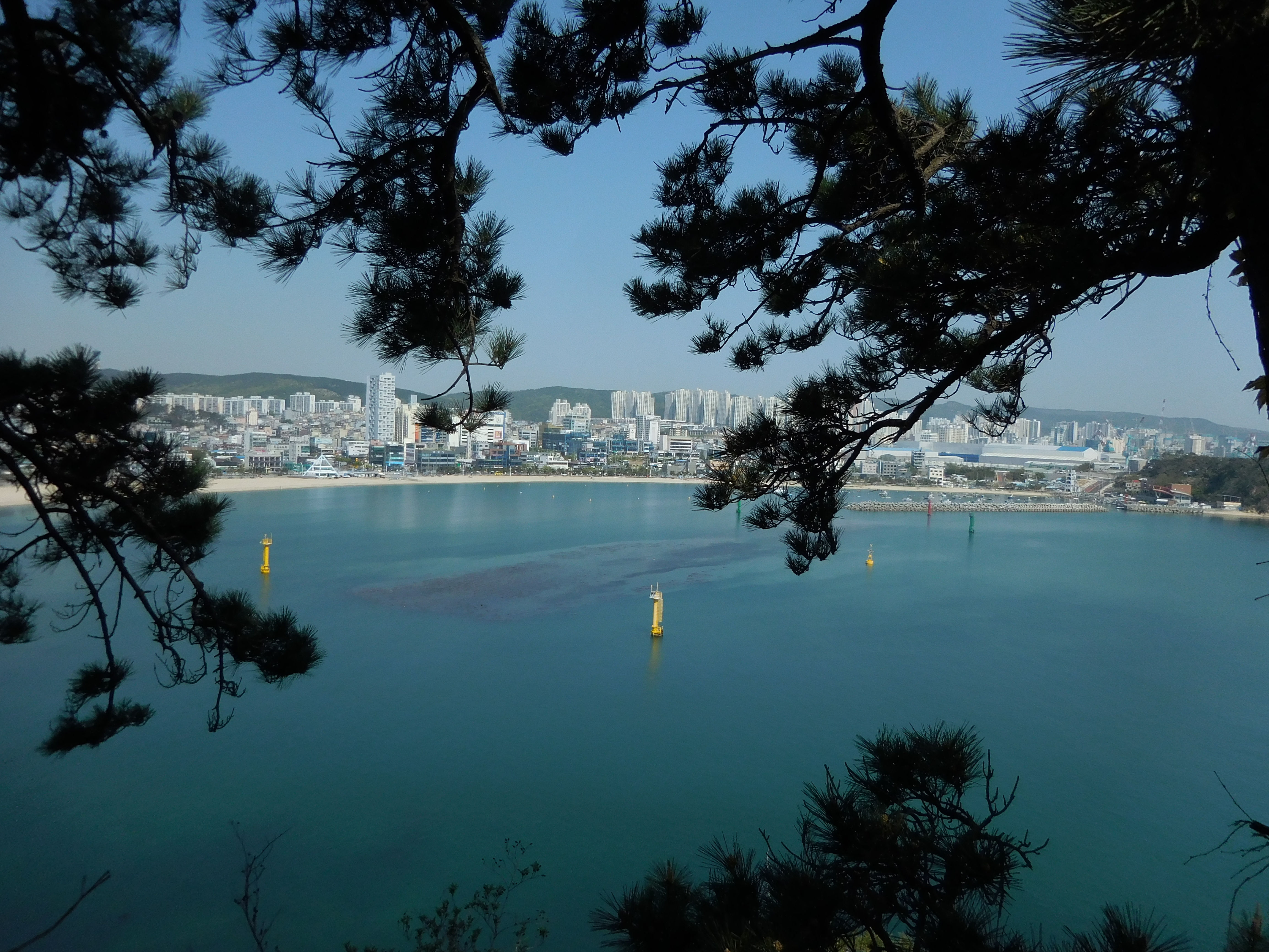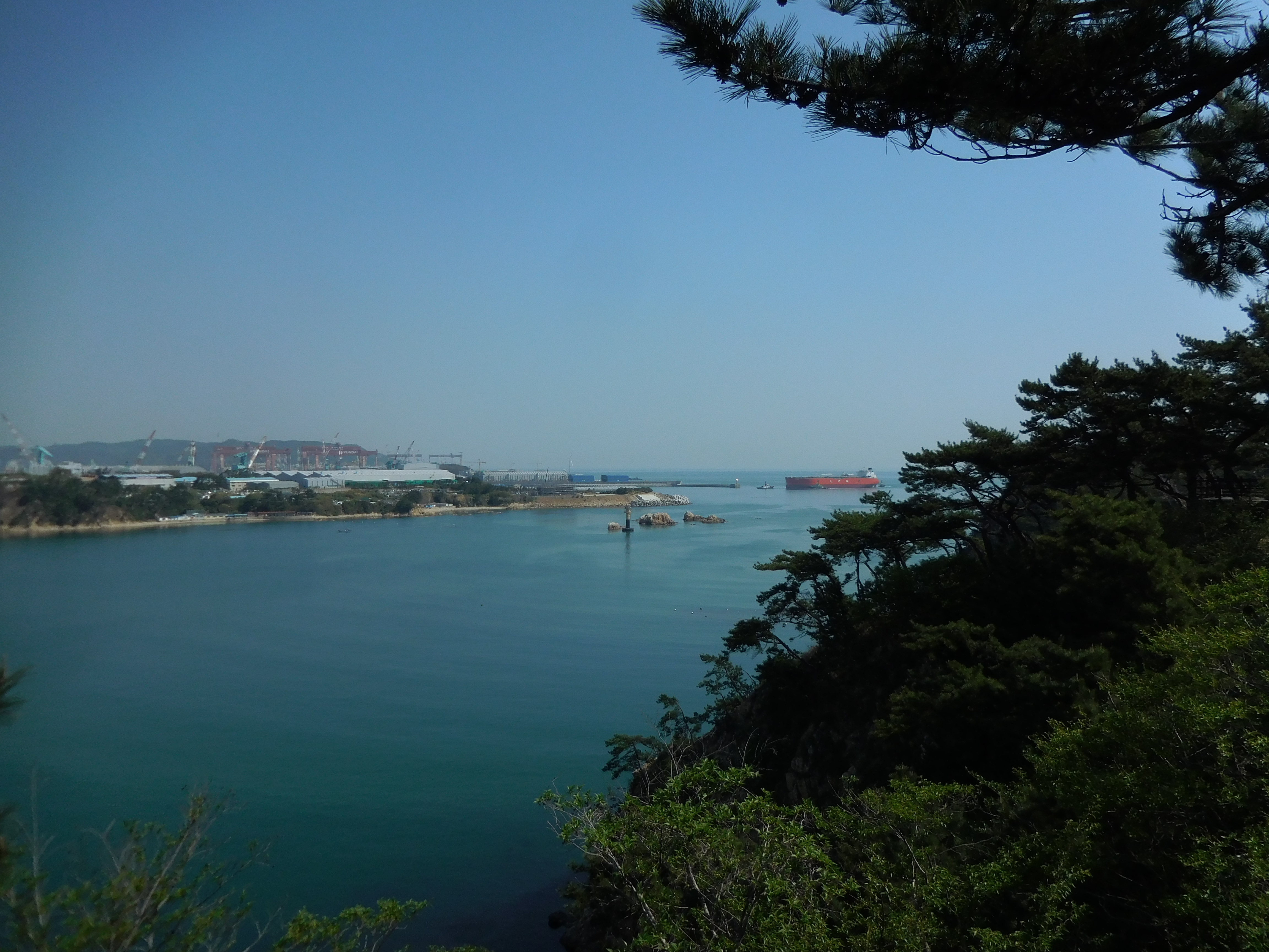 전망대에서 조망. ▲앞의 일산해수욕장과 우측의 ▼현대중공업 앞바다의 두개의 섬 민섬