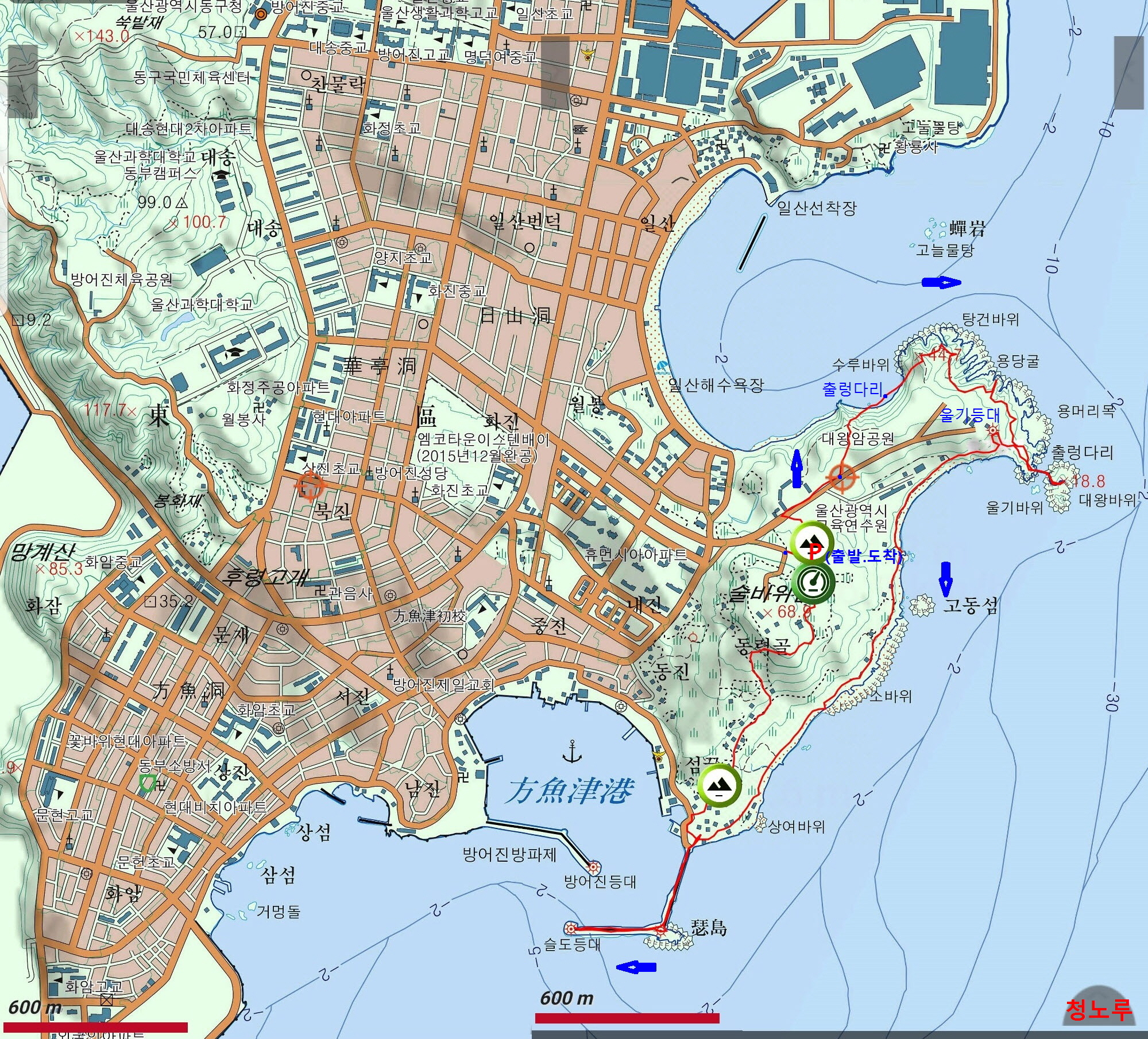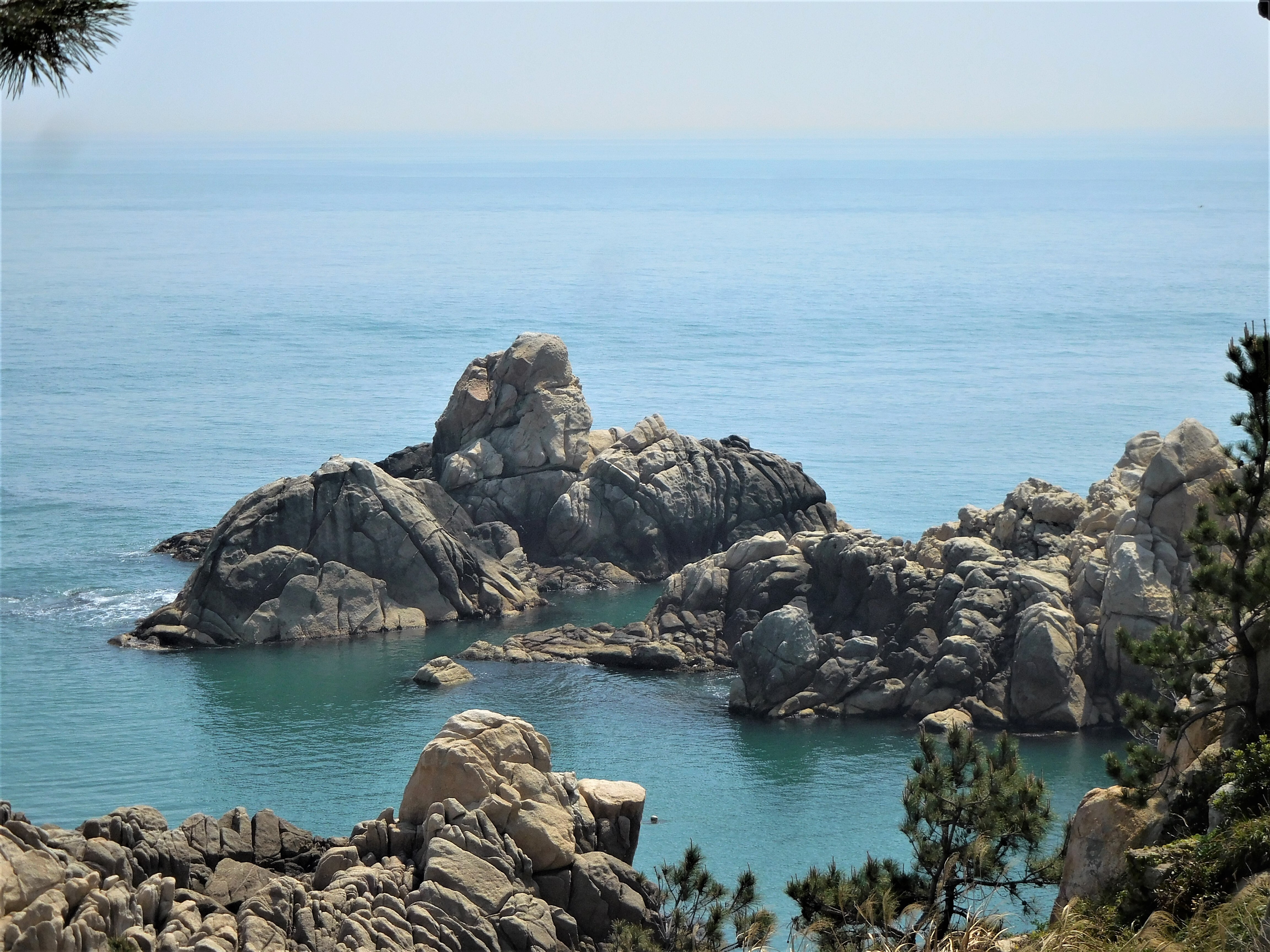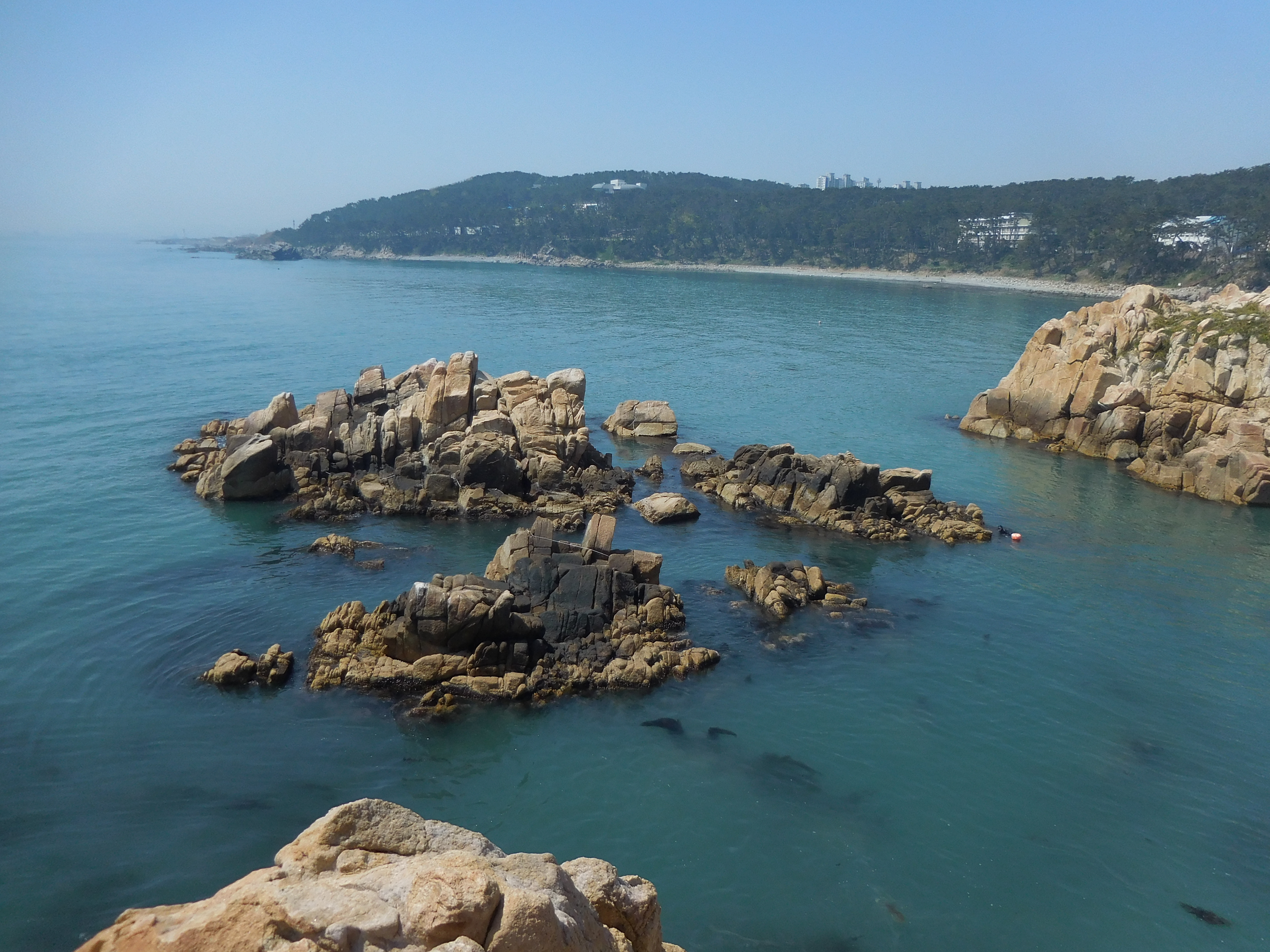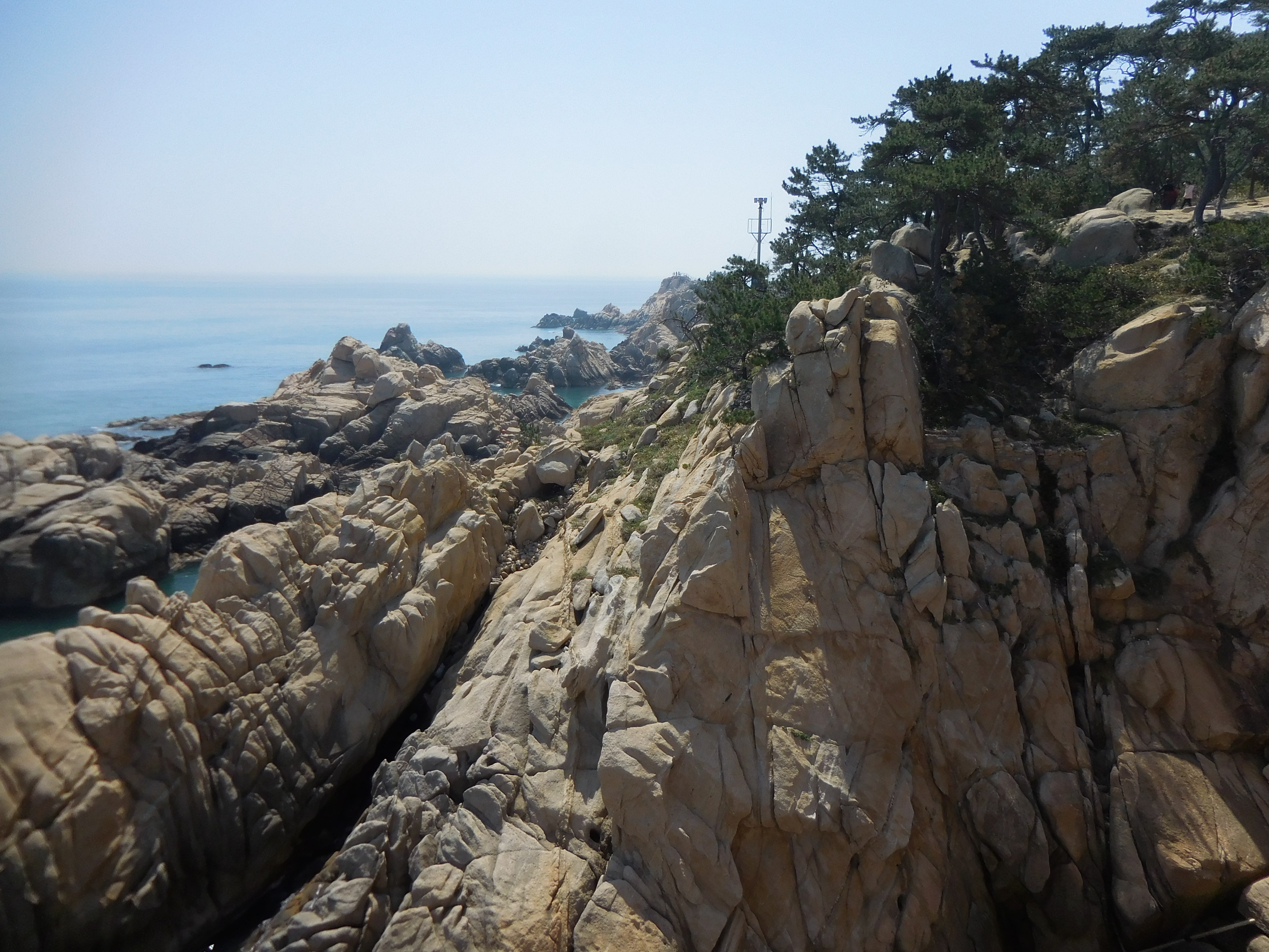 - “중점.노애개안”-유채밭-“배미돌”-“상여바위”(해동용궁사)