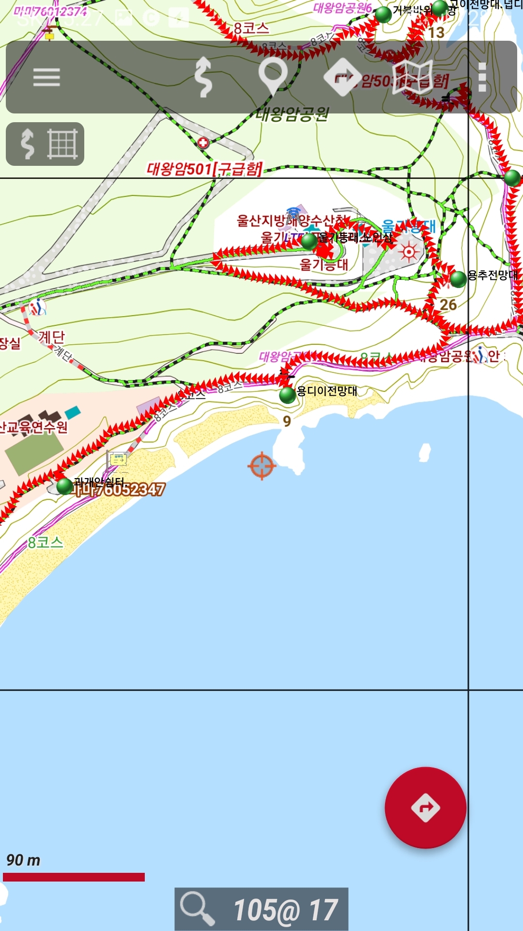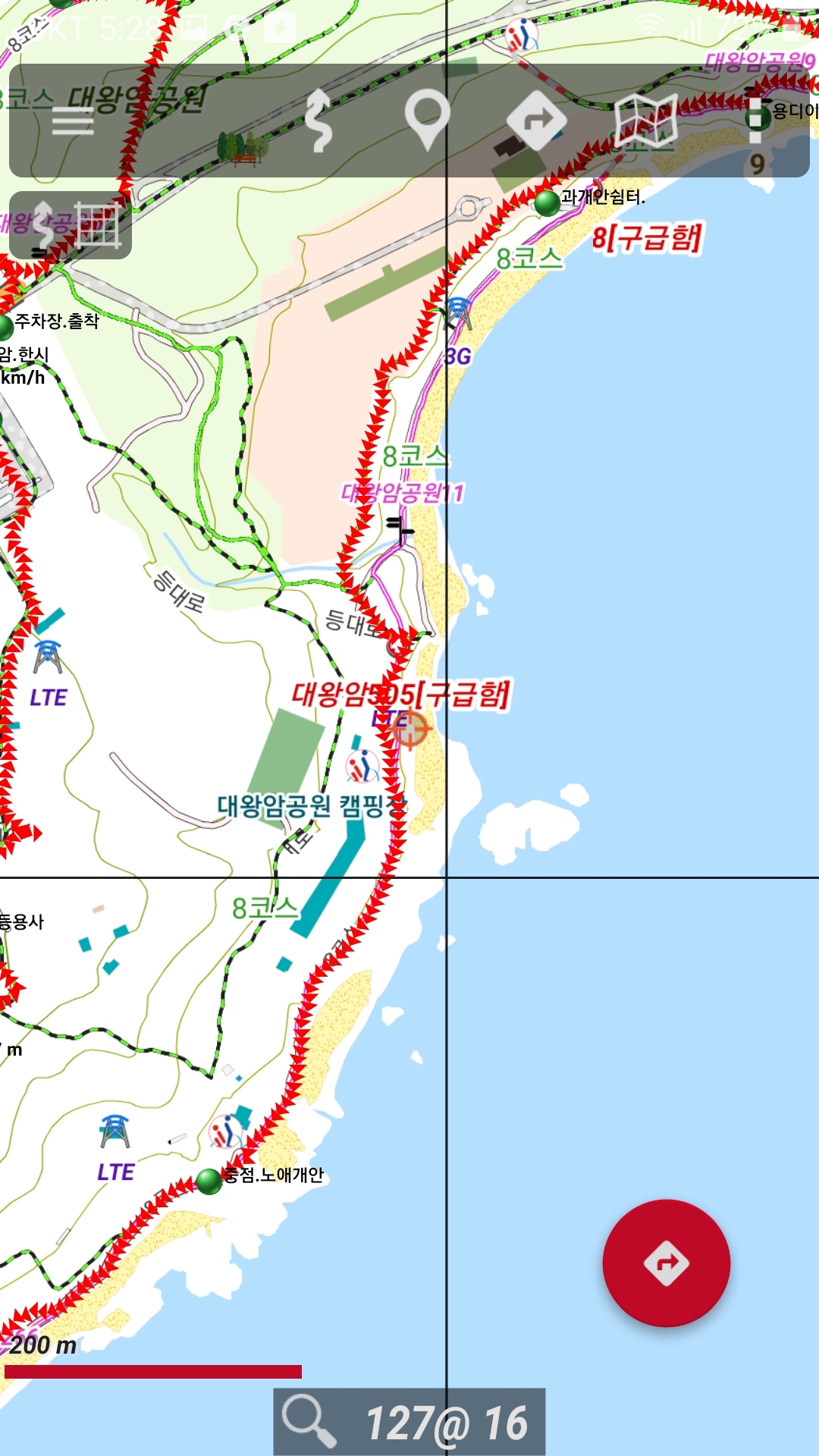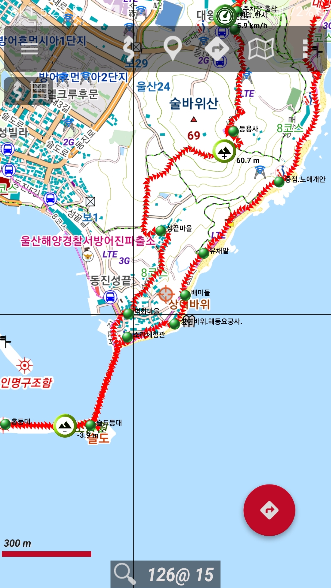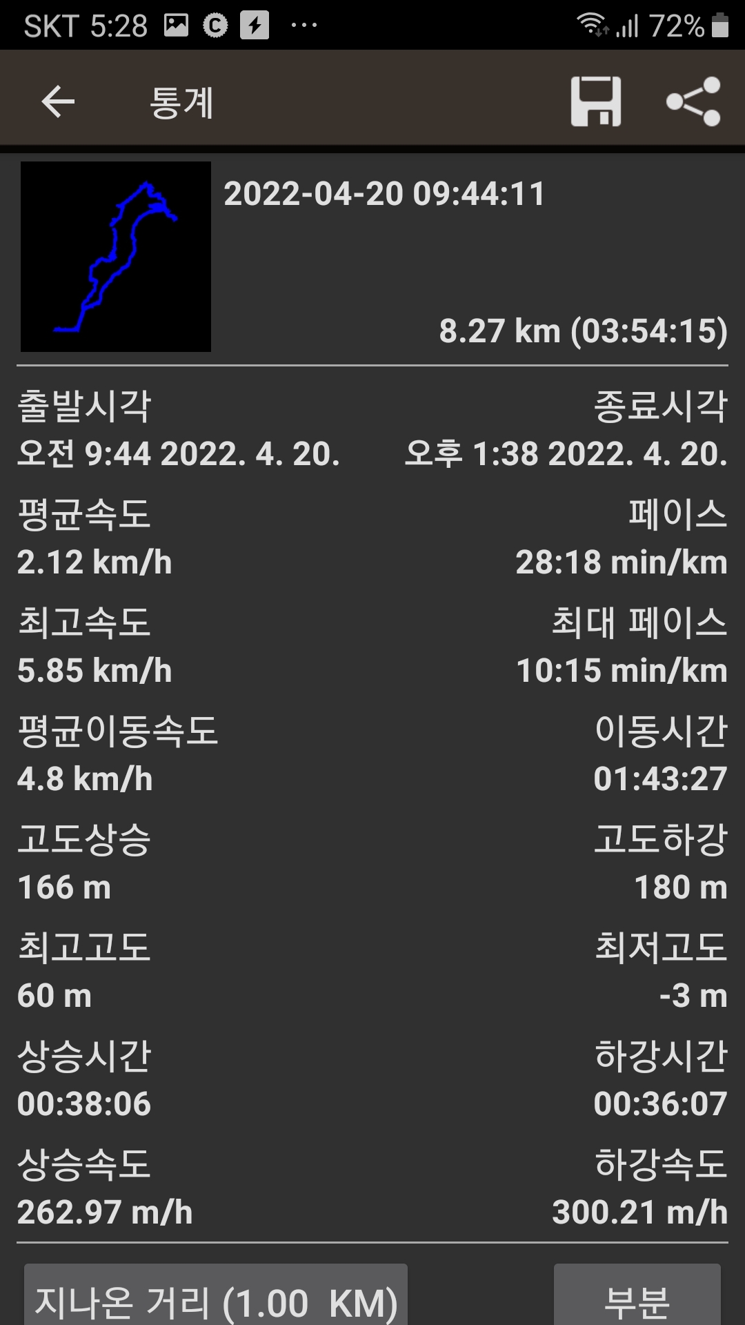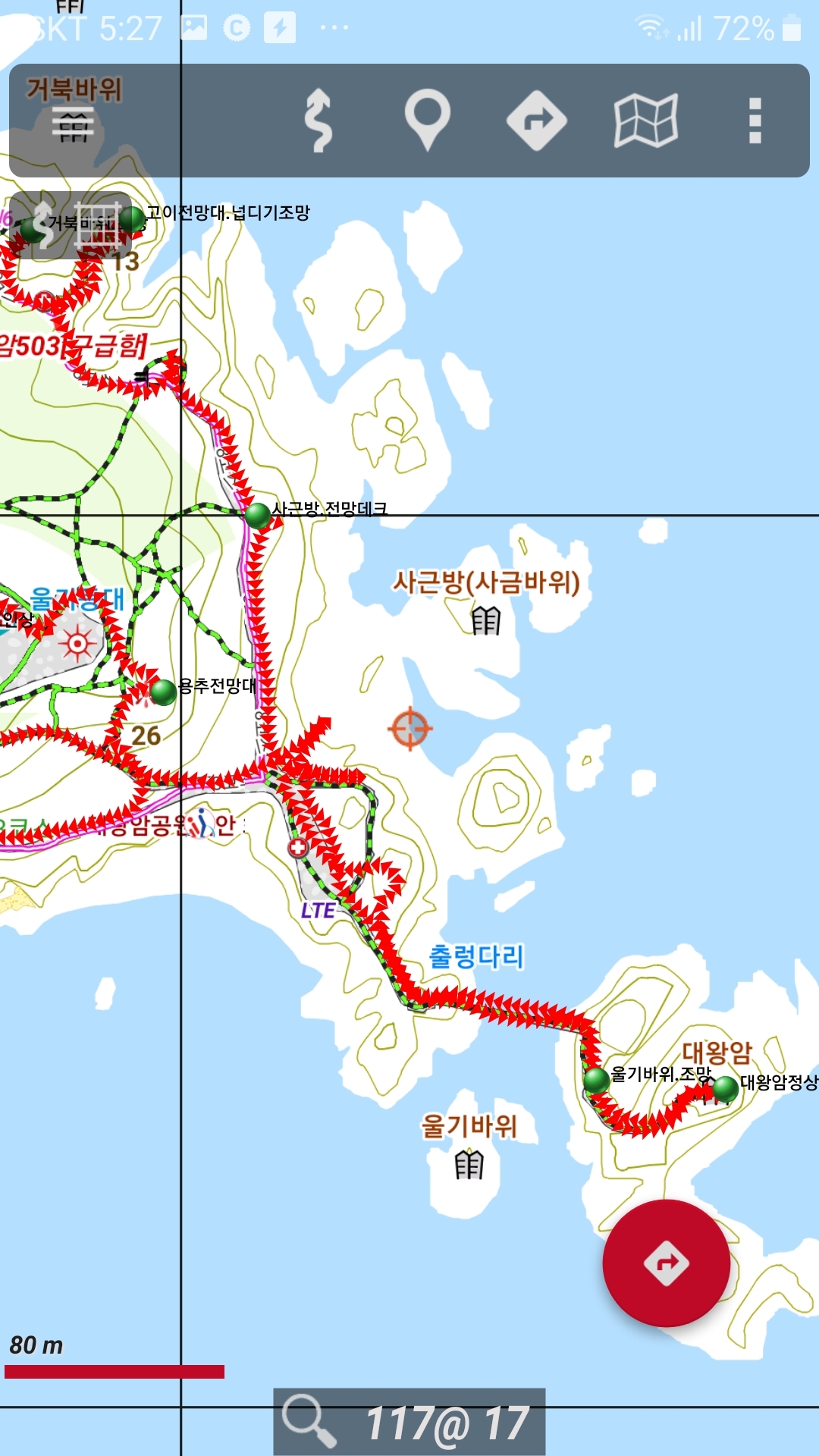 실제진행 기록지도 (▲구글어스와 ▼오룩스맵)