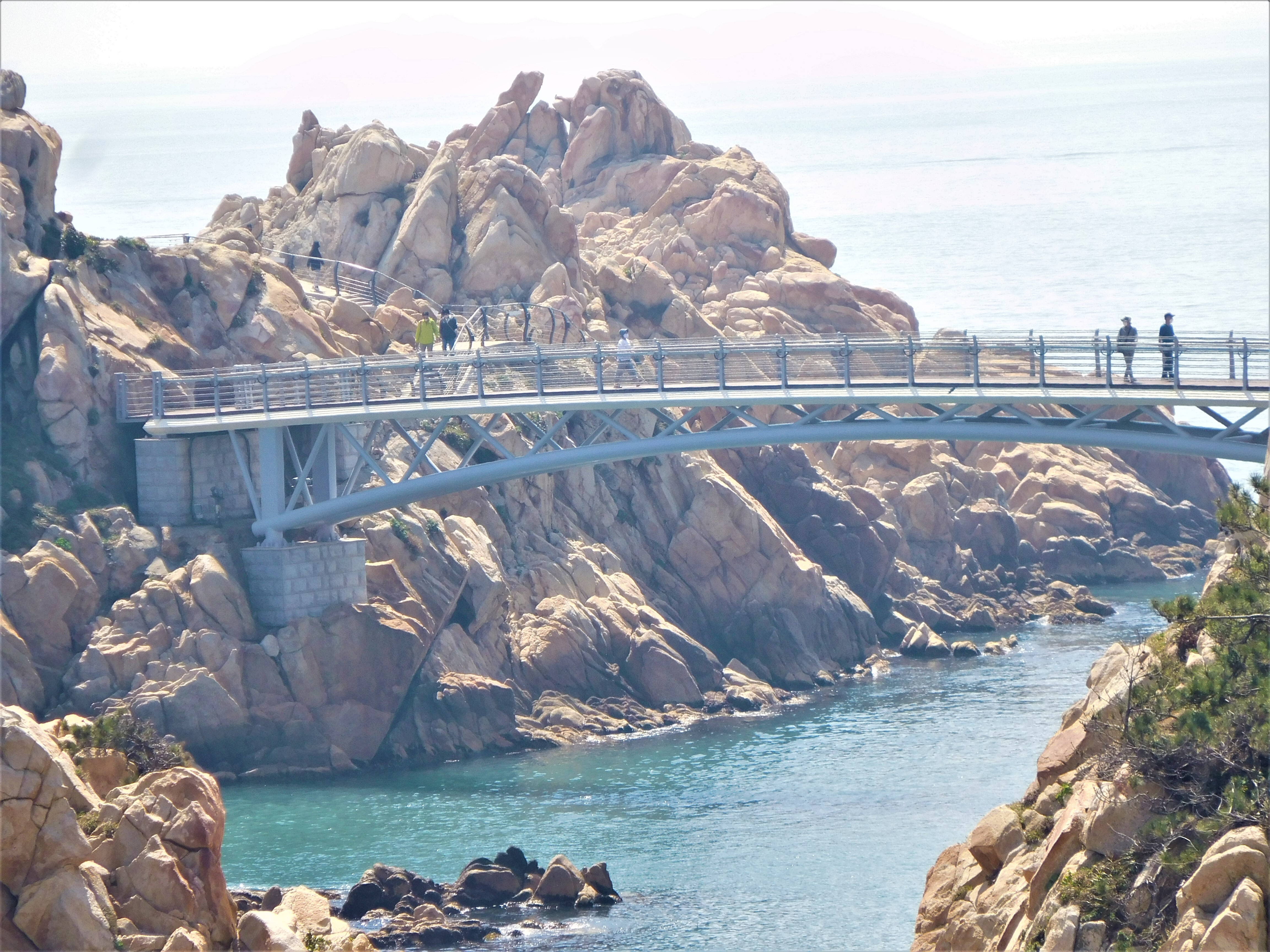 ▲앞의 가야할 대왕암과 ▼정상부와 대왕교 출렁다리 줌인