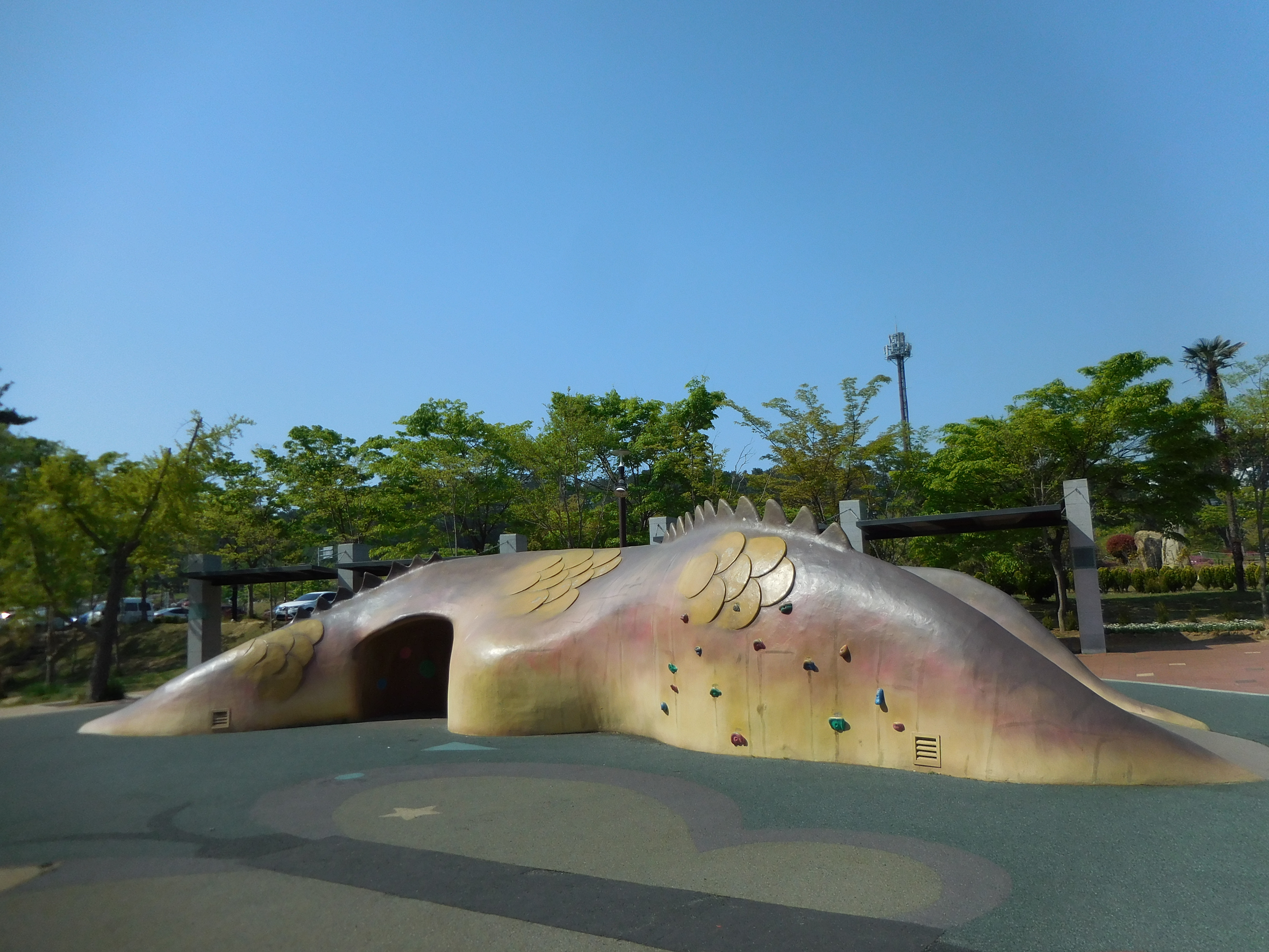 미르놀이터의 용 형상과 돌고래 형상의 놀이기구