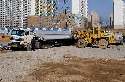 보관은 말뚝의 사용순서를 고려해 놓고 하역하면 변형이 발생치 않도록 주의한다. |