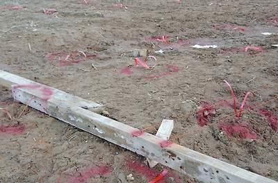 설계도면에서 미스나 오해가 없는지 확인한다. 한번에 많은 말뚝 중심을 표시하는 가 말뚝을 설치하면, 이동하면서 없어지기로 한다. |