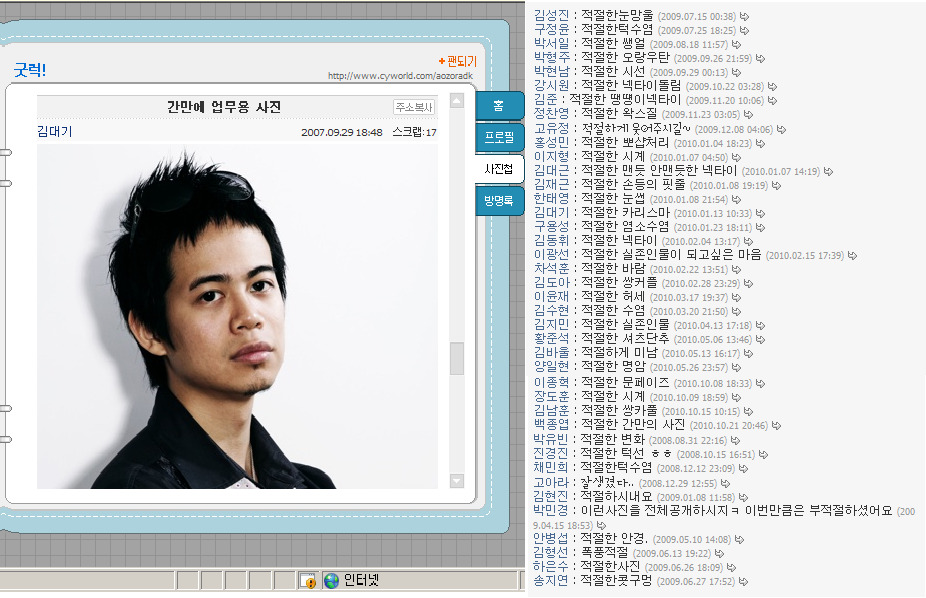 작성자구루미이이이~ 작성시간 11.04.05 이사람 요새 모하구사남 ㅋㅋㅋㅋㅋㅋㅋㅋㅋㅋㅋㅋㅋ