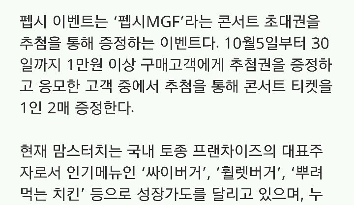 덕후 = 맘스터치 펩콘 응모하죠?? 기사났던데??
