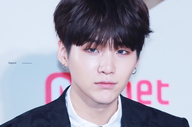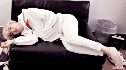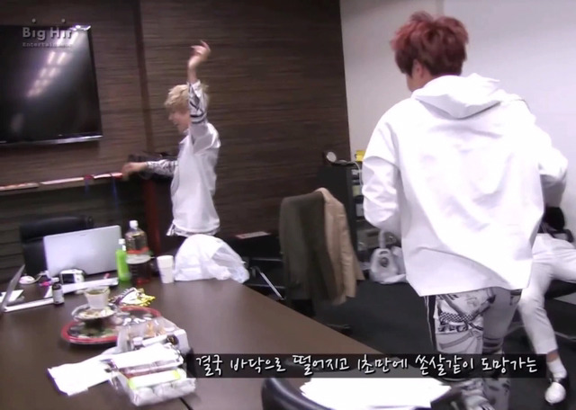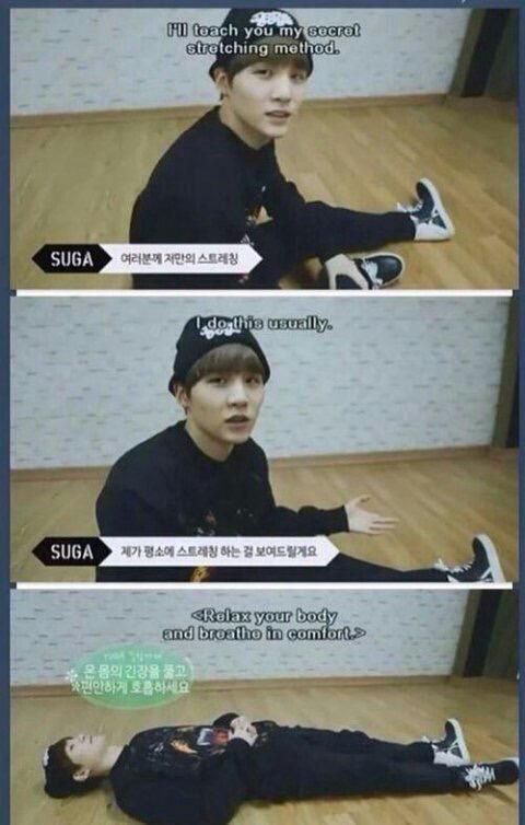 스트레칭을 하다가 카메라를 보고 있는 슈가.