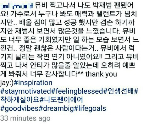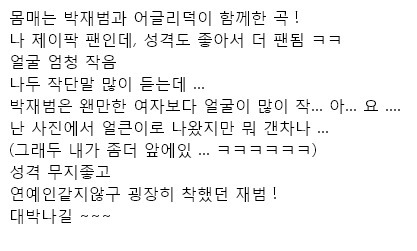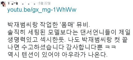 솔로 뮤비 여주역으로 나오신 여성분이 쓴 글ㅋㅋㅋ