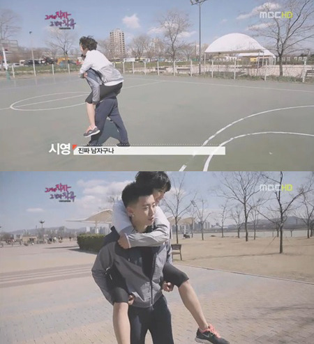 유리찡 상의 뒷부분이 끈으로만 되어있어서 재범이가 처음 들쳐안을때만 허리대신 팔꿈치 잡고 일어서서