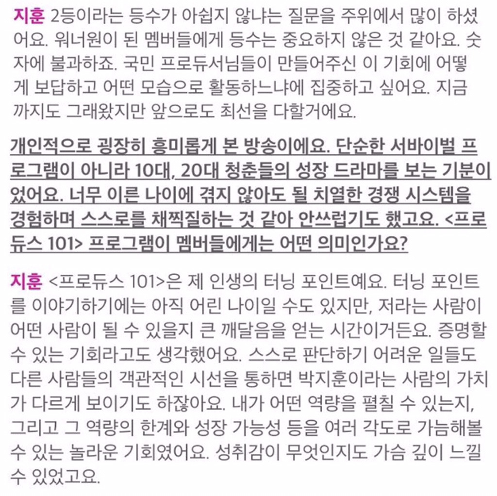 프로듀스 끝나고 첫 인터뷰에서